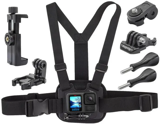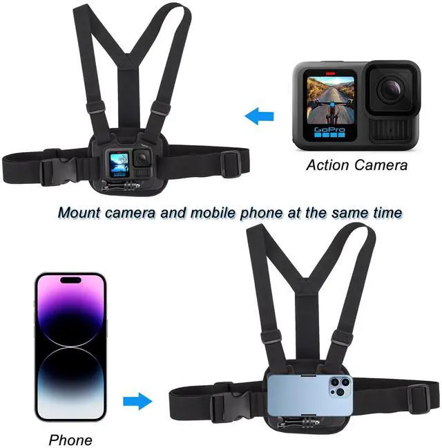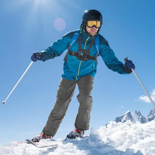 Chest strap mount for skiing, Hiking, Jumping, Play Sctoor, cycling, Ride a motocycle, snorkeling and more activity.