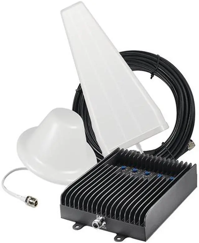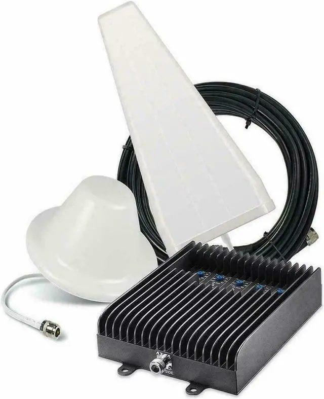| Features | The SureCall Fusion5s Yagi/Dome Signal-Booster Kit works for all major carriers in the United States. It's manually adjustable for areas up to 6,000 sq. ft. Included are 30 ft. and 75 ft. lengths of SureCall 400 low-loss coaxial cable, an outdoor yagi antenna and an indoor dome ceiling-mount antenna. |