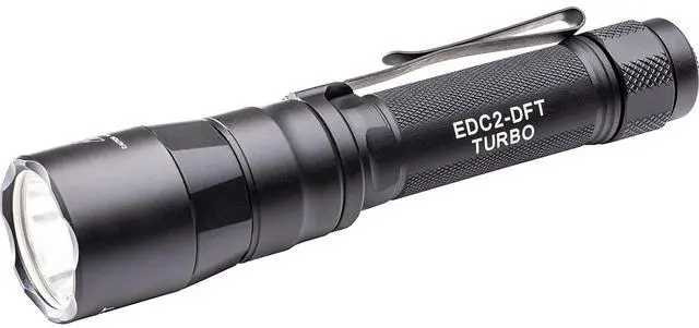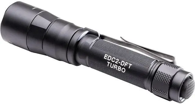 Bring the power of illumination to your fingertips with the SureFire EDC2-DFT Dual-Fuel Turbo LED Flashlight. Engineered with the most advanced LED emitters, this flashlight offers superior brightness and efficiency. Its sophisticated electronics ensure consistent performance, while the robust body is designed to withstand the toughest conditions. The EDC2-DFT is the latest addition to SureFire's legacy of producing durable, high-performance flashlights. This model stands out for its unmatched durability, brilliant performance, and rugged reliability, setting it apart from other brands in the market. Whether you're navigating through a dark environment or need a reliable light source for outdoor adventures, the SureFire EDC2-DFT Dual-Fuel Turbo LED Flashlight is your go-to choice.