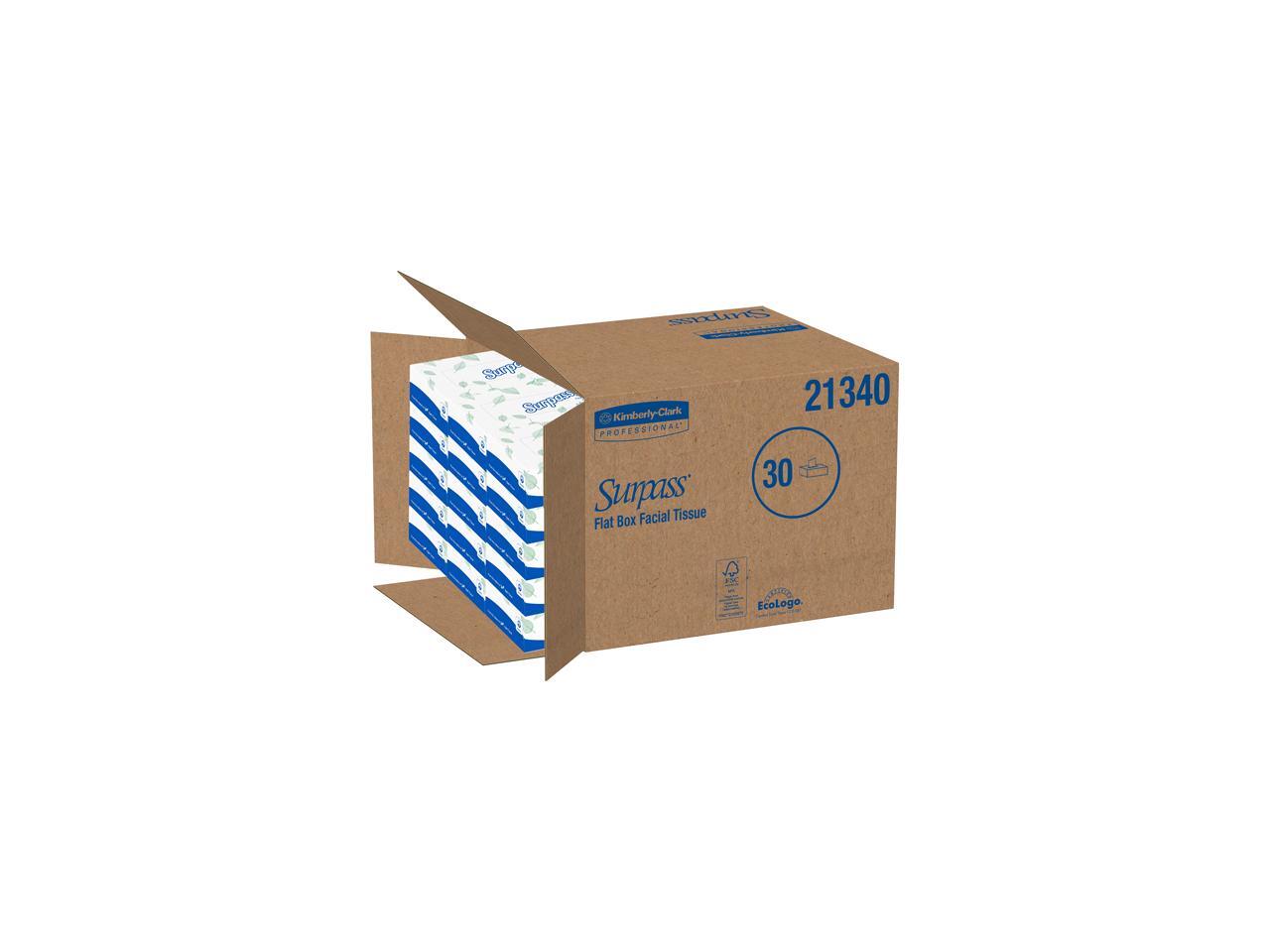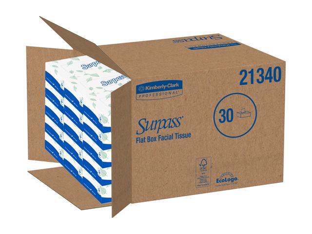 Surpass Facial Tissue Flat Box (21340), 2-Ply, White, Unscented, 100 Tissues / Box, 30 Boxes / Big Case