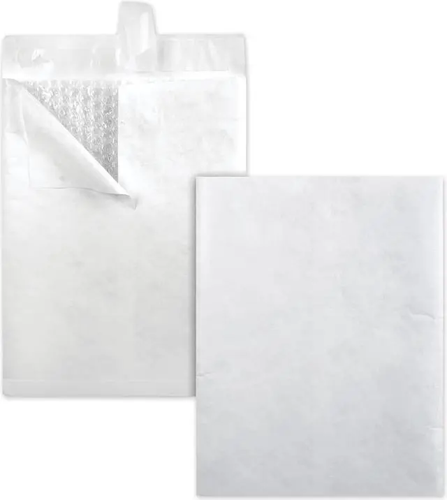 Package delicate materials inside the waterproof, rip-resistant Quality Park Redi-Strip® Bubble Mailers to ensure safe delivery. From documents to CD cases, most typical day-to-day mail can fit comfortably inside these envelopes. Their smooth, white construction is backed by durable paper made of DuPont™ Tyvek® material for extra support, and the self-sealing flaps are heavily gummed for a tight hold.