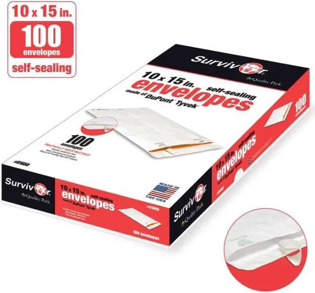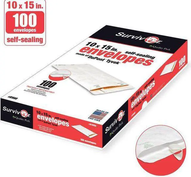 Quality Park® Survivor® Catalog Mailers are made with durable 14-lb DuPont™ Tyvek®, which is strong enough to withstand the most grueling conditions. The material is puncture, tear and moisture resistant—virtually indestructible. Yet, it is still lightweight which can provide a savings on shipping costs. These white mailing envelopes feature an easy Flap-Stik® closure which requires no moisture for a secure seal and a release strip for quick, easy opening. Whether your sending smaller items or re-selling on an online marketplace, Survivor Catalog Mailers are an efficient, cost effective way to make sure your items get there intact.