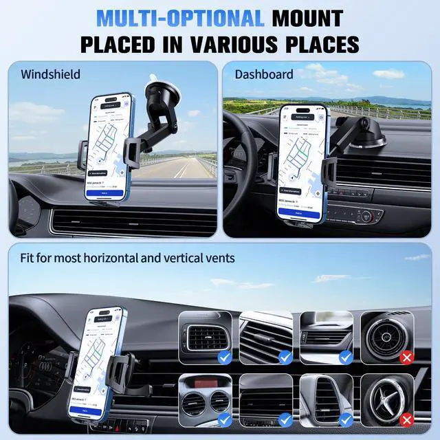 Apple iPhone Series: iPhone 17 / 16 / 15 / 14 / 13 / 12 / 11 series, iPhone SE, and earlier models down to iPhone 6s. Samsung Galaxy Series: Galaxy S25 / S24 / S23 / S22 / S21 / S20 / S10 / S9 / S8 series, Note10/Note10+, and more. Other Major Brands: Also compatible with select models from Google Pixel, LG, OnePlus, Motorola, and Nokia. Case Compatibility Note Fits Most Cases: With a generous depth of 1.18 inches, it securely holds phones with most standard cases, including battery cases. Not Suitable For: Does not fit thick wallet cases or folio cases that exceed 1.18 inches in total thickness.