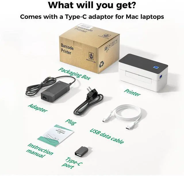 The SVANTTO Thermal Shipping Label Printer is the ultimate solution for small businesses and individual sellers who demand high-quality, efficient, and reliable label printing. This game-changing label printer integrates cutting-edge thermal technology, eliminating the need for ink and toner. It offers versatile connectivity, supporting both Bluetooth for mobile devices and USB for desktop computers. Our thermal printer is designed to handle a wide range of label sizes, accommodating widths from 1.57 to 4.3 inches (40-110mm). It delivers unparalleled speed, capable of printing 72 four-by-six-inch labels per minute, making it an excellent choice for busy shipping departments and home offices alike. Compatibility with leading shipping and e-commerce platforms ensures that you can manage your shipping needs seamlessly. Whether you're printing shipping labels, barcodes, or product tags, this thermal label printer guarantees crisp, clear prints every time. In the package, you'll find everything you need to begin printing immediately: a thermal printer, an easy-to-follow instruction manual, a USB cable for wired connections, an adapter, a plug, and a type-C port for Mac laptops.