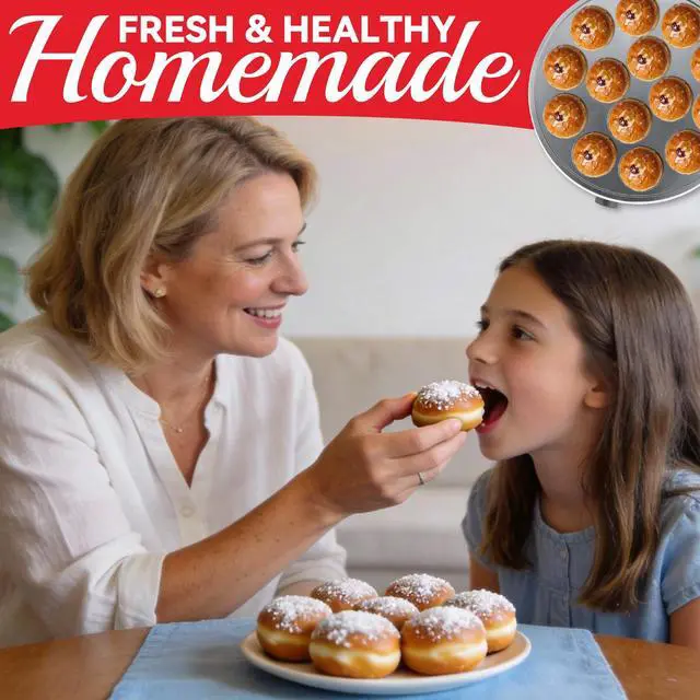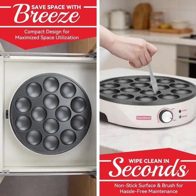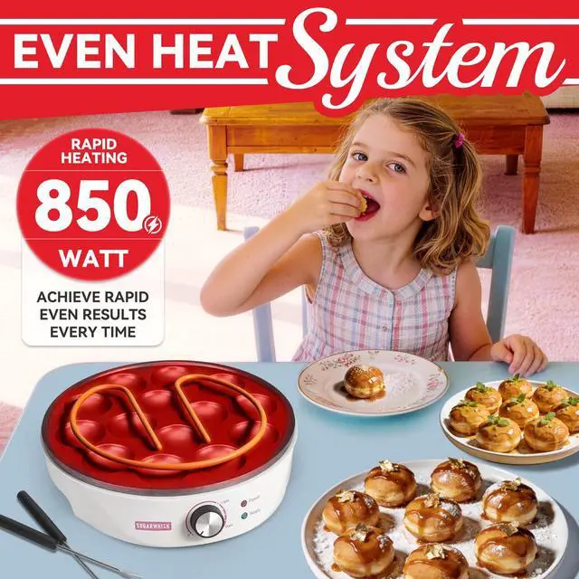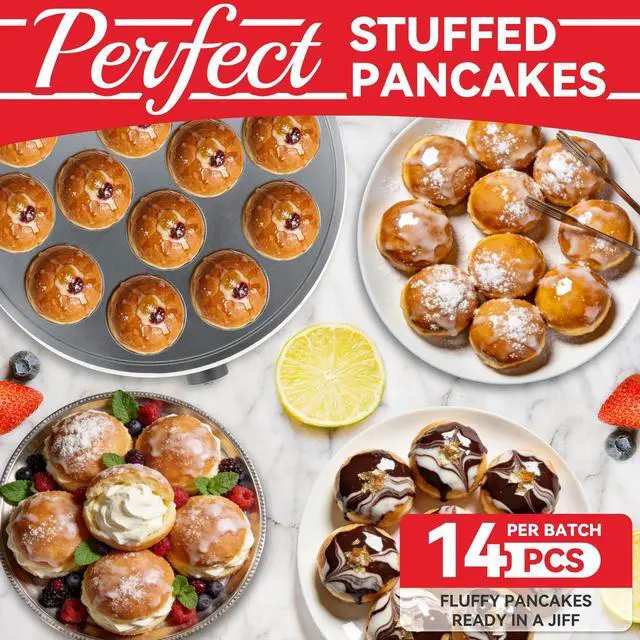 [Extensive Versatility]: Perfectly suited for preparing a variety of dishes such as mini pancakes, poffertjes, ebelskiver, and more. Effortlessly elevate your creations by topping them with a generous sprinkle of icing sugar, a drizzle of honey or chocolate sauce, a dollop of butter, or any other desired toppings.
