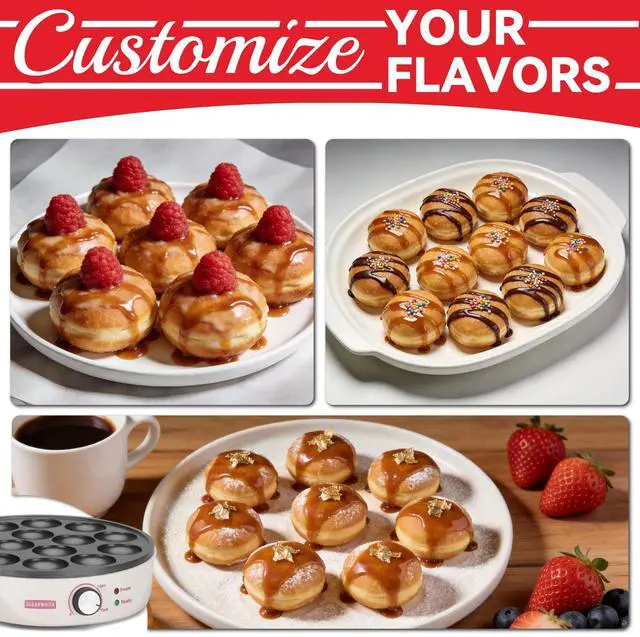 [Satisfy Every Bite]: Equipped with deeper grill cavities, this electric poffertjes pan encourages creativity by accommodating an abundance of your favorite fillings, elevating each bite into a satisfying masterpiece.