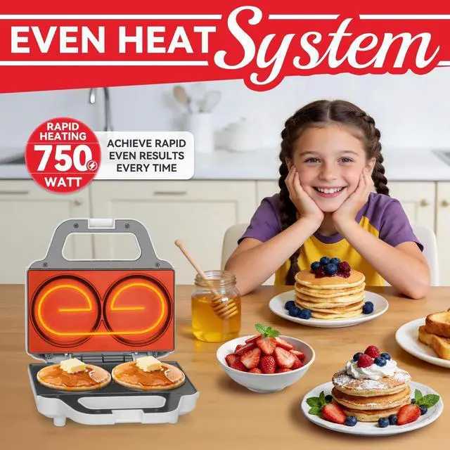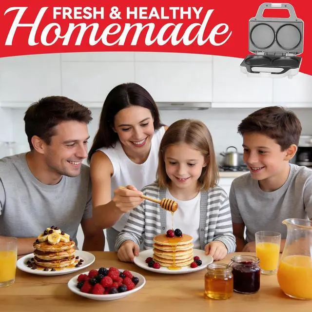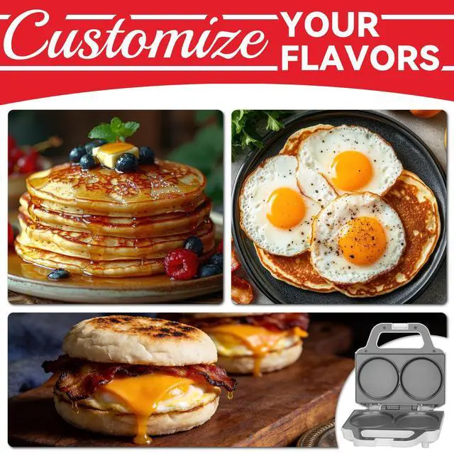[BEYOND PANCAKES]: Prepare individual/family portions of eggs, cookies, pancakes, and grilled cheese without requiring numerous pots and pans.