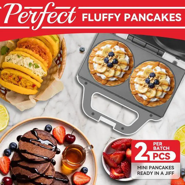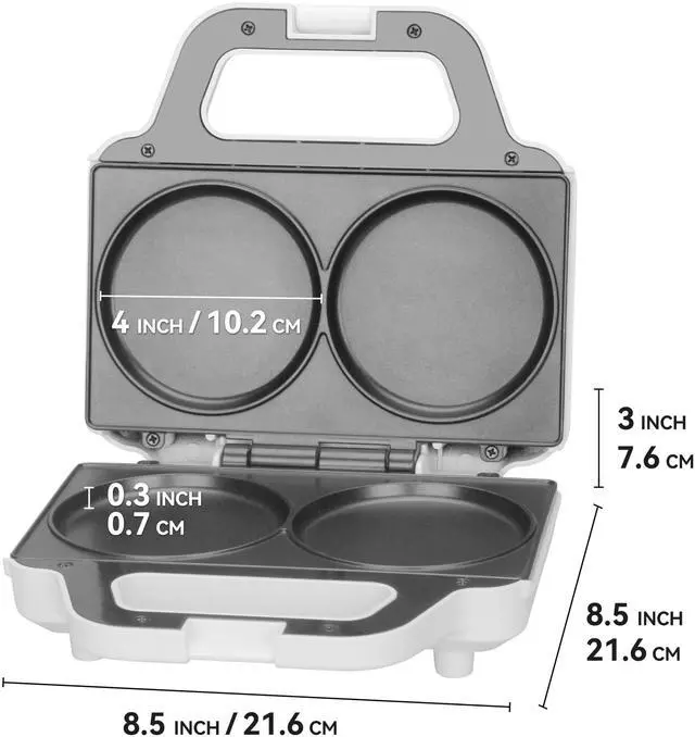 Double Mini Pancakes Maker Machine, Arepa Maker, Electric Pancake Maker Griddle, Ideal for Pancakes, Cookies, Eggs, Arepas & Breakfast Sandwiches, White, 4 Inch