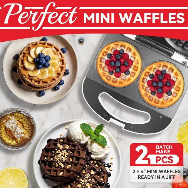 Double Mini Waffle Maker Machine, Chaffle Maker, Waflera Electrica, Small Waffle Iron for Waffles, Keto Chaffles, Hash Browns, Cookies, 4 Inch