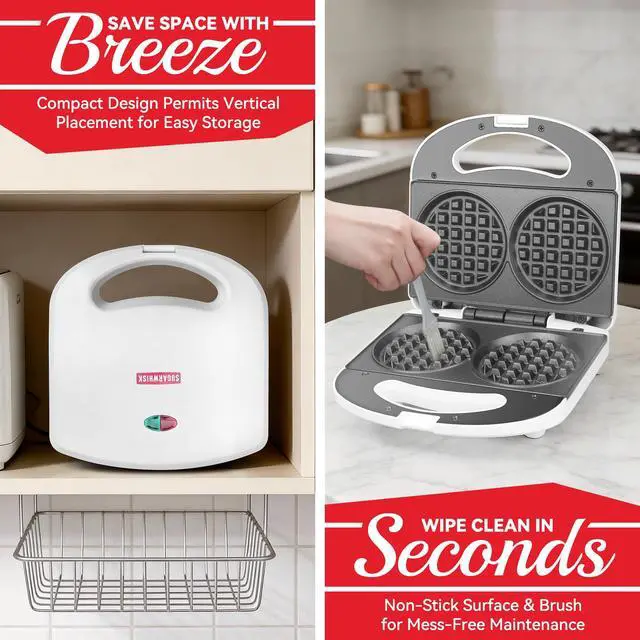 Learn more about the SugarWhisk Double Mini Waffle Maker White