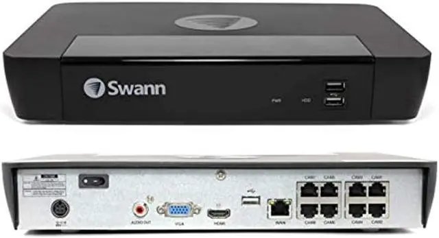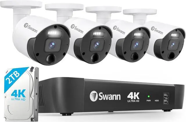 Swann Security Camera System CCTV, 4 Camera 8 Channels POE NVR Master 4K Upscale Video Wired Surveillance, Indoor Outdoor, Night Vision, Heat Motion Detection, SWNVK-876804