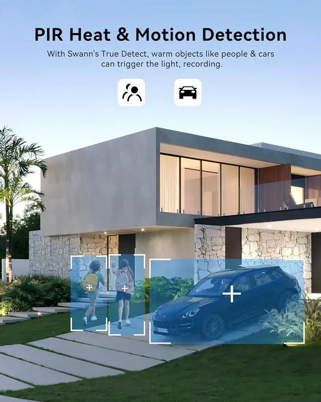 RELIABLE SECURITY. With Swann's True Detect, warm objects like people & cars can trigger the lights, push notifications & re