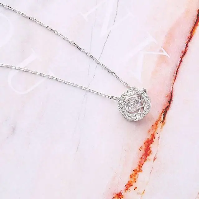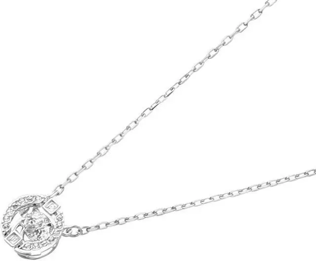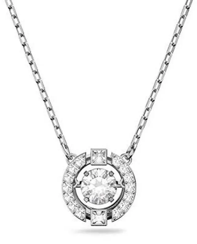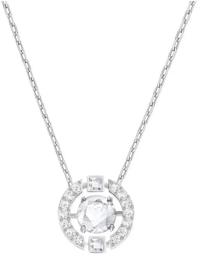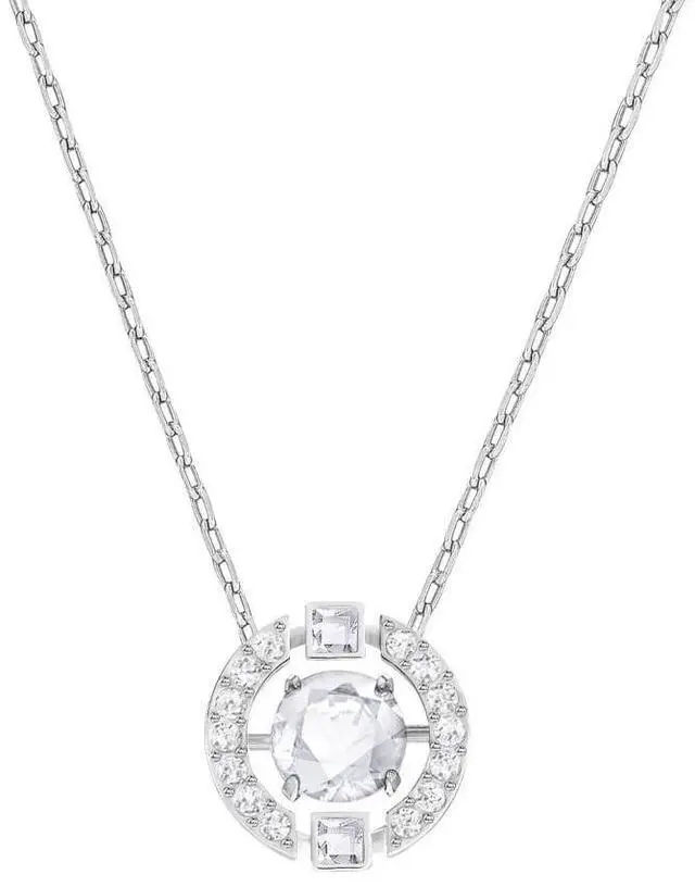 Inspired by the idea of a dancing crystal this necklace showcases a round stone that floats inside a metal cage embellished with crystal pave. An essential addition to any jewelry box it will give your daytime style a playful sparkle. The necklace is rhodium-plated.