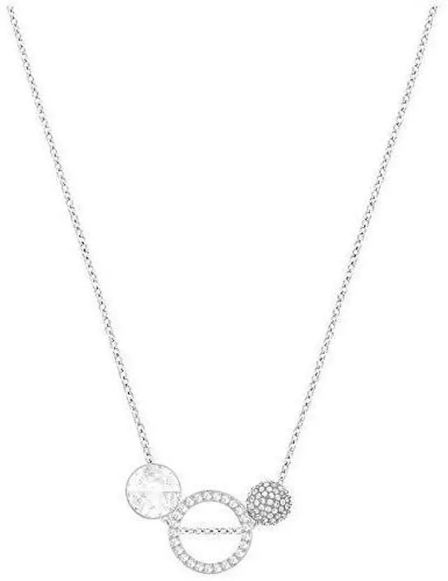 Give your everyday look a touch of luxury with this versatile pendant. It features a Pointiage sphere a circular outline design and a crystal all strung on a rhodium-plated chain. Go for glamour by wearing all three elements at once or place one of the crystals into the circle for a different effect. Perfect for any occasion it would make a gorgeous gift.