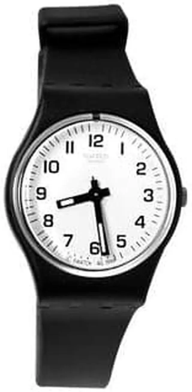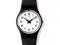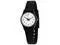 Dial Color: White dial with black hands and arabic numerals, Strap: Black plastic,