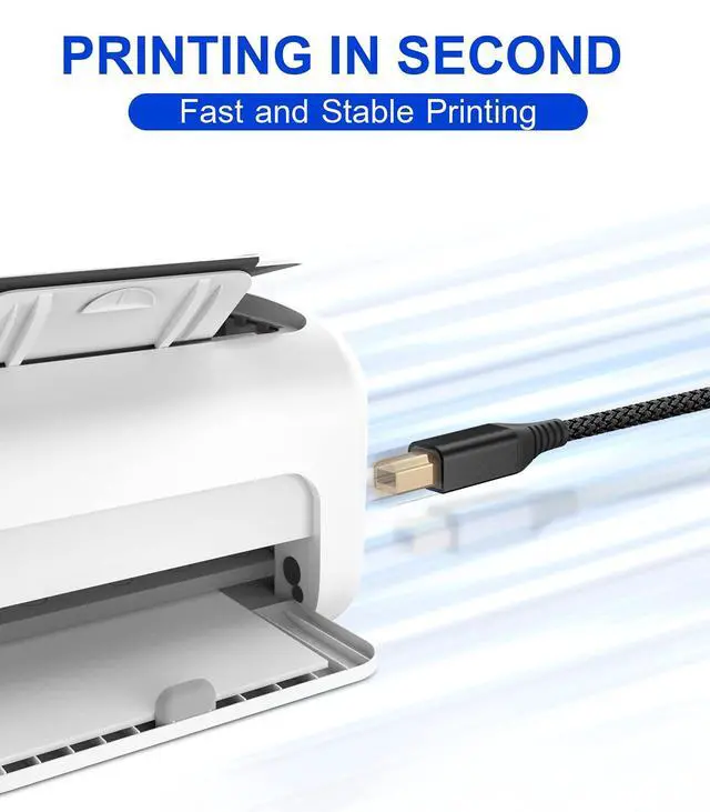 sweguard printer cable comes with full USB 2.0 capability, up to 480Mbps high speed data transfer & backwards compatibility, faster and more stable than most Wi-Fi connections, ideal for connecting your printer,scanner, fax machine,server, hard drive,camera, piano and other USB b devices to a laptop, computer (Mac/PC) or other USB-enabled device for data transfer.