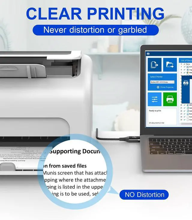 Ultra durable wired printer cord ensures the data transmission more stable than Wifi and fax.