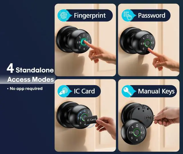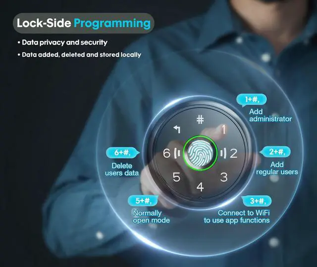 Lock-Side ProgrammingAdd, delete, and store relevant data directly on the lock. Password, fingerprint, IC card, and key functions work completely independently of the appperfect if you dont need the Wi-Fi feature temporarily.