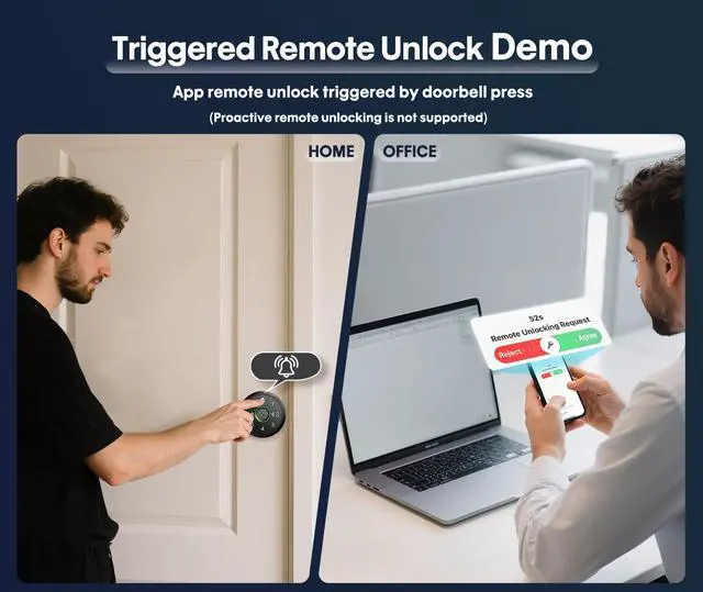 Home & Office SecurityRemote unlocking requires no credential sharing with othersevery entry needs your explicit approval. Wherever you are, get instant alerts for every lock/unlock event and invalid password attempts.