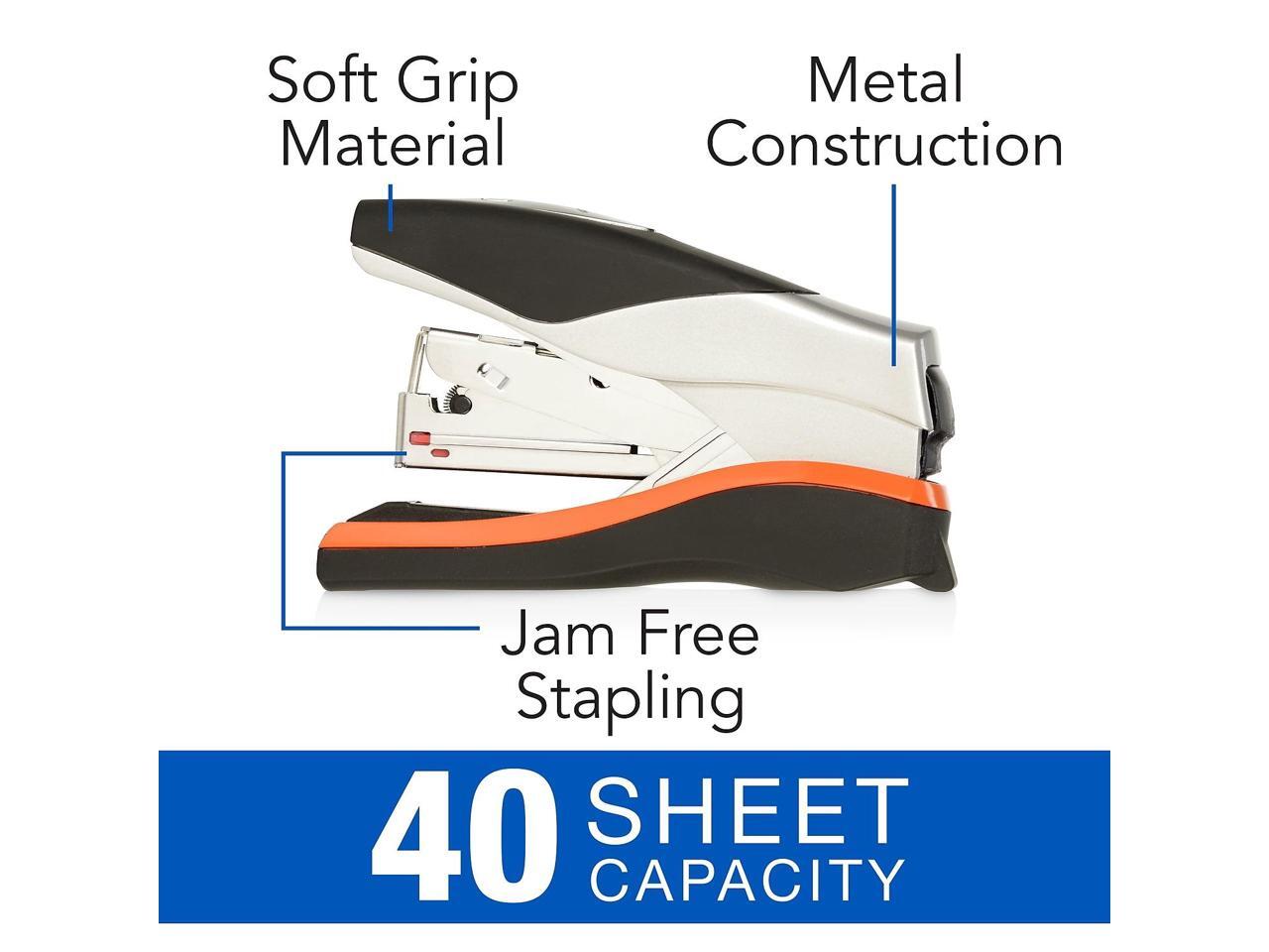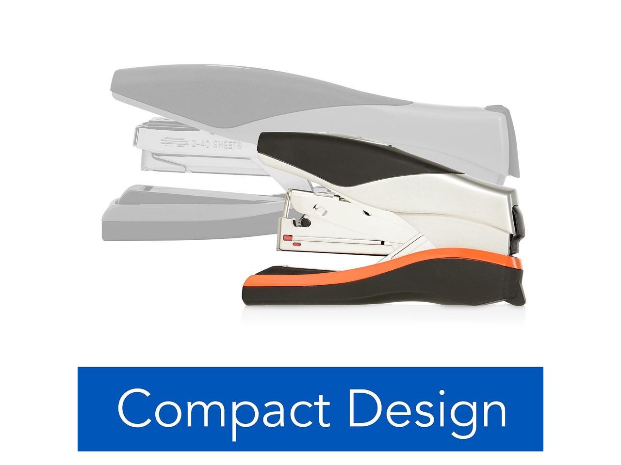 Optima40 Compact Reduced Effort Metal Stapler requires 50% less effort than traditional staplers. Staples not included. Reduced effort design requires 50% less effort than traditional staplers.