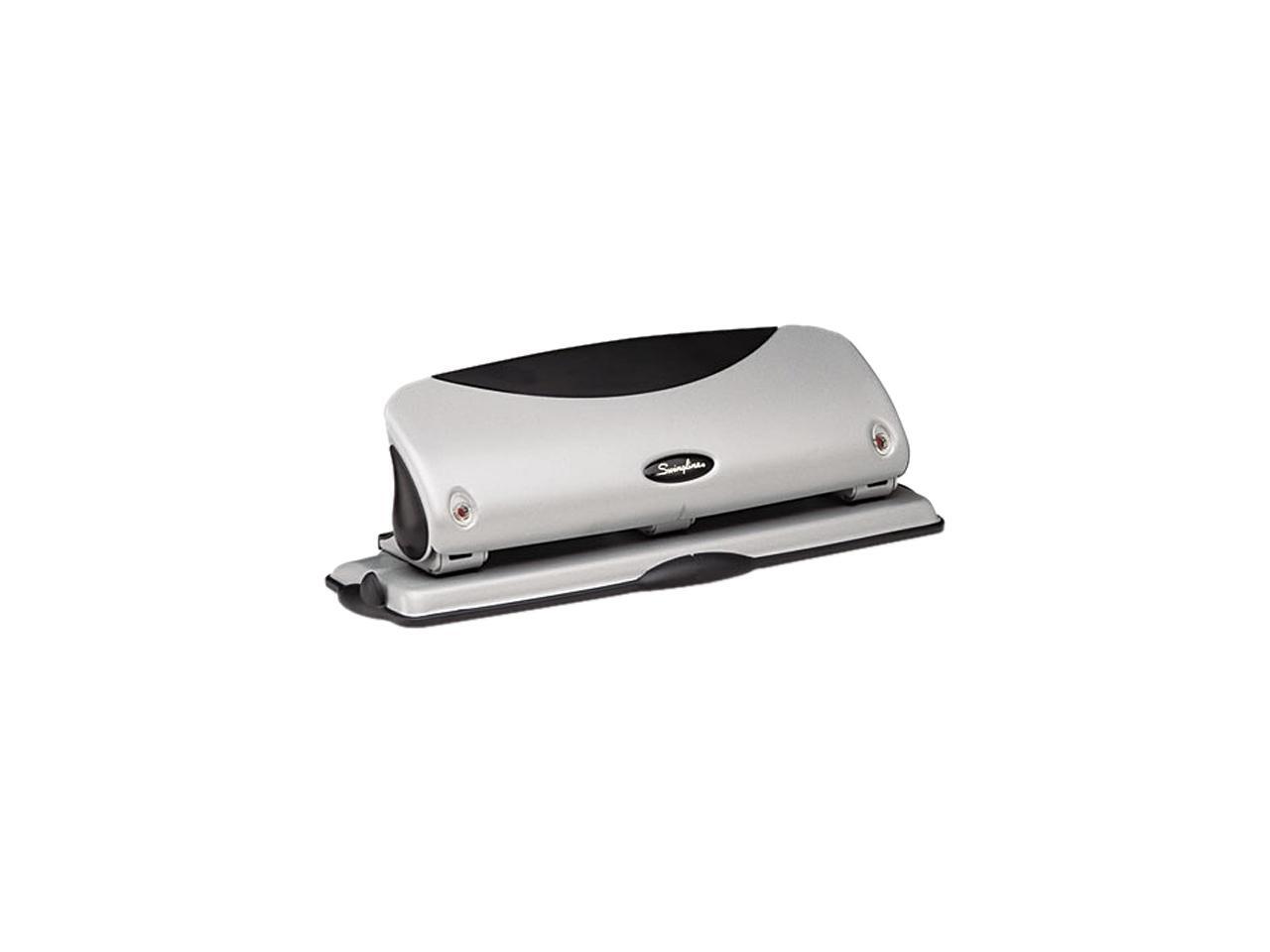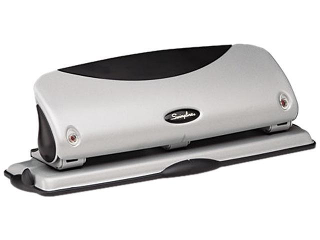 Swingline 74063 12-Sheet Easy View Desktop Punch, Three Hole, 9/32 Diameter Hole, Black/Silver