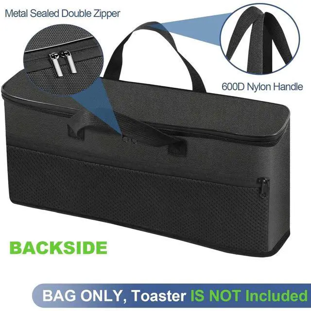 Hard strips at fabric joints keep the toaster carrier case shapely, keeping the storage bag neatly structured.