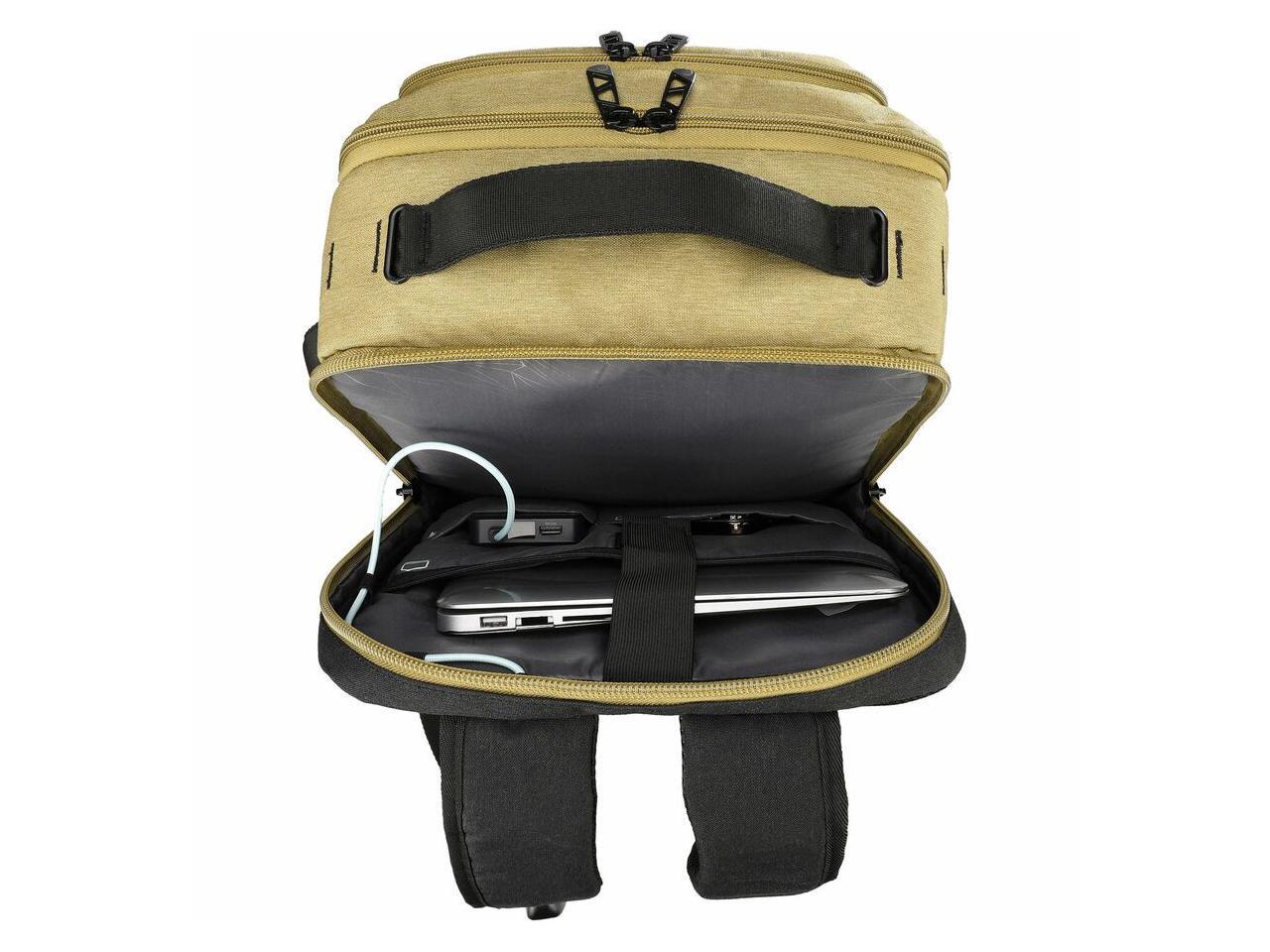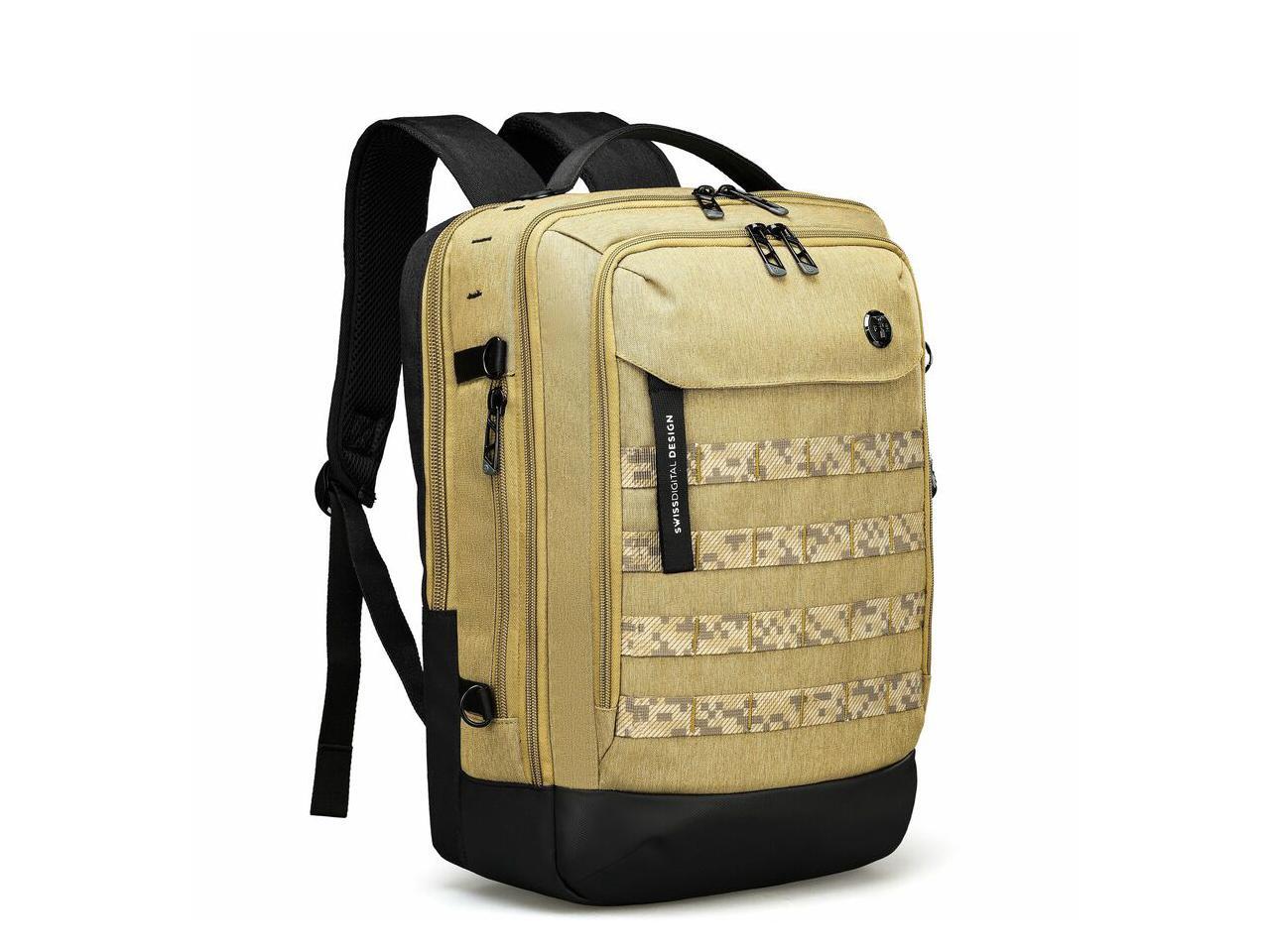 Swissdigital BERG Dark Khaki L Backpack - Durable - TSA-Friendly Bag with Patented USB Charging Port - RFID Protection Pocket - Padded Laptop Compartment that Fits up to 16" Laptop SD1647-74