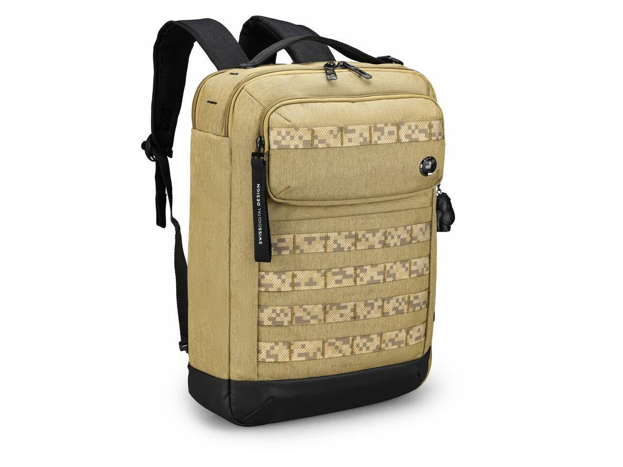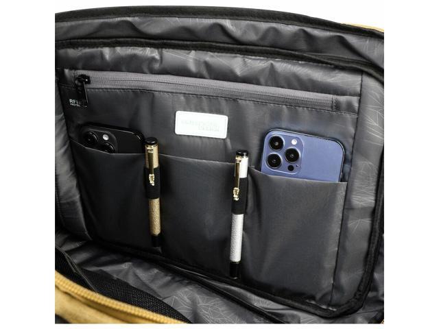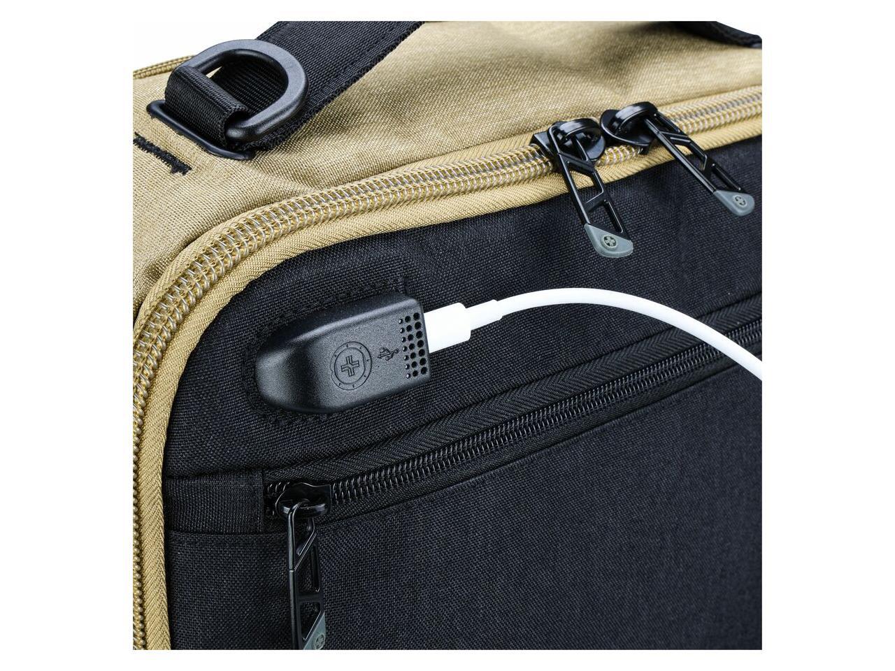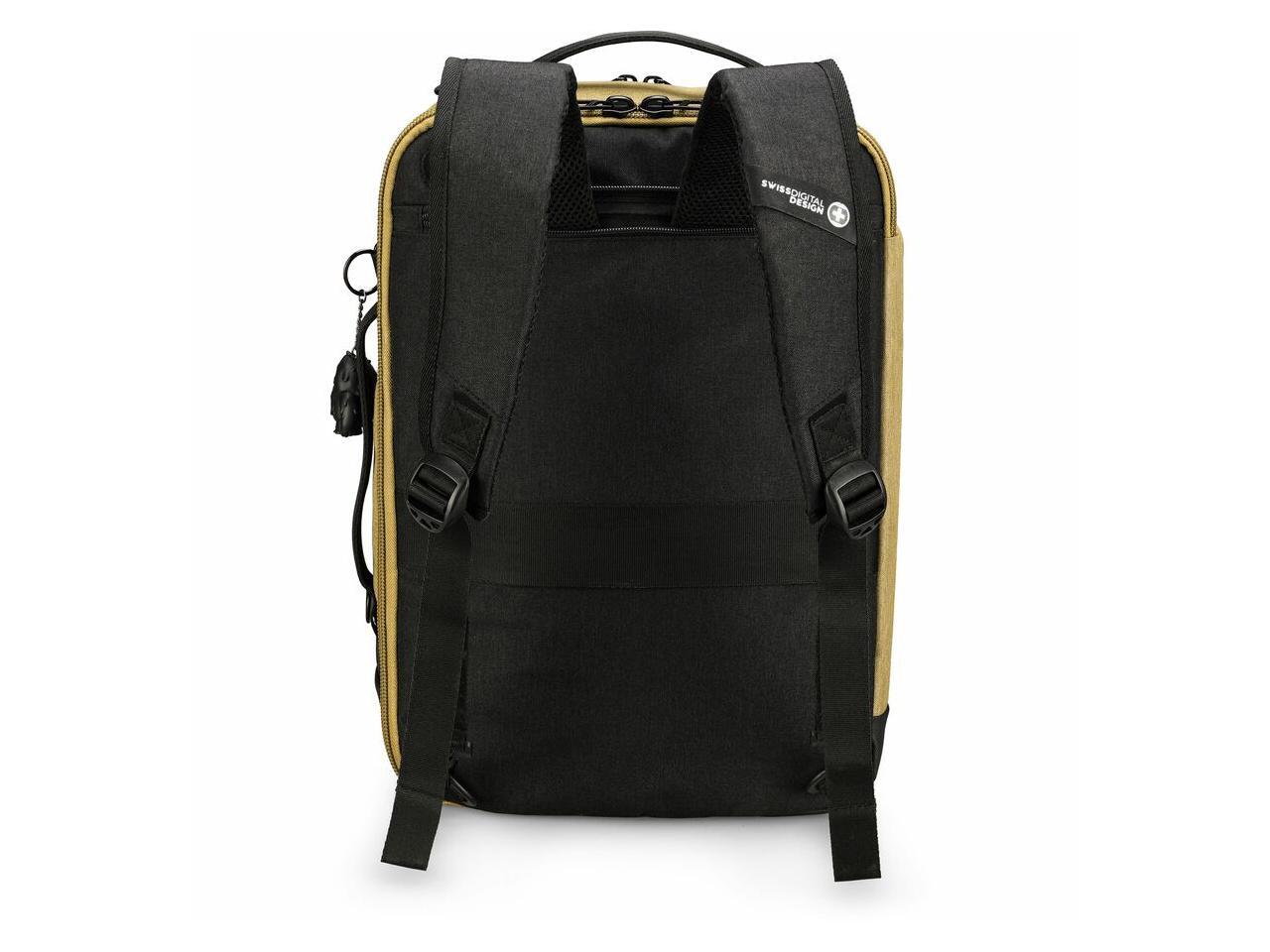 Swissdigital BERG Dark Khahi Hybrid Briefcase - USB Charging Port with Integrated Cable - RFID Protection Pocket - Padded Laptop Compartment Fits up to 16" SD1649-74