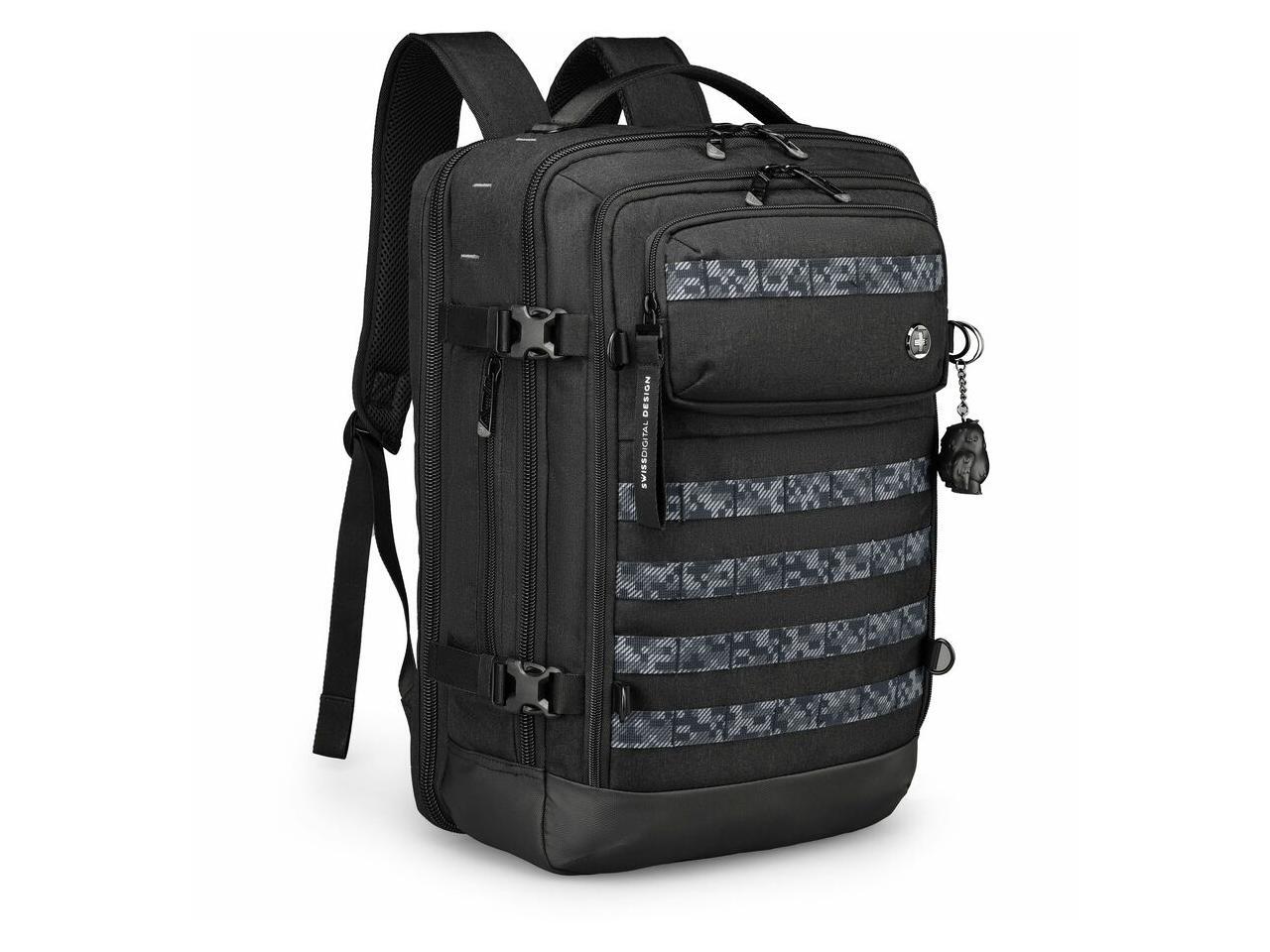 Swissdigital BERG PRO Black XL Backpack - TSA-Friendly Backpack with USB Charging Port, RFID Protection Pocket, Trolley Sleeve for Easy Travel, Padded Laptop Compartment SD16489510-01