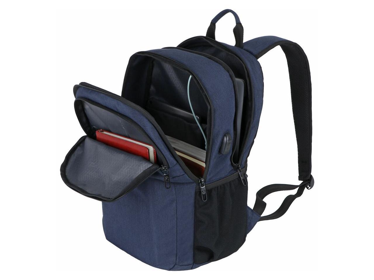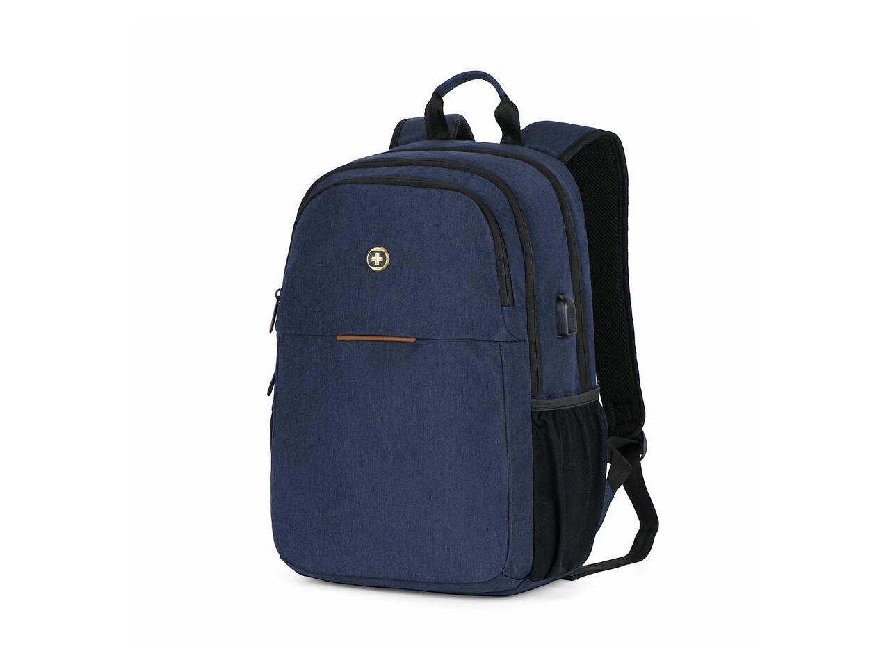Swissdigital BIBERSTEIN Dark Blue Backpack - Stylish, Durable Bag with USB Charging Port - RFID Protection Pocket - Padded Compartment for Laptops 17" SD1636-12