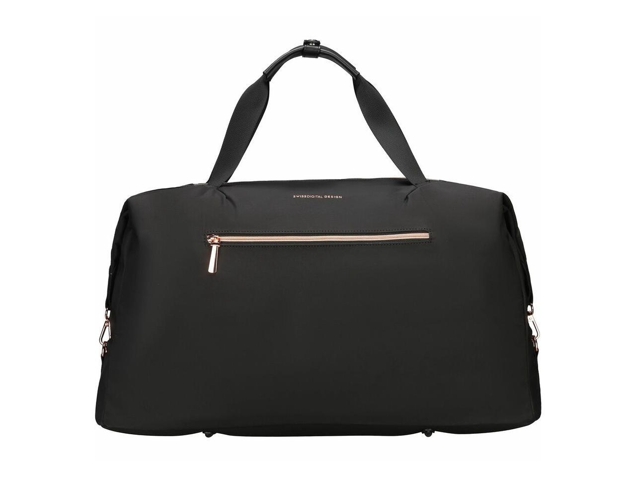 Swissdigital KATY ROSE NG Black Duffle Bag - Stylish, Eco-Friendly Fabric with Multiple Storage Options, Perfect for Students, Professionals, and Everyday Use SD5527-01