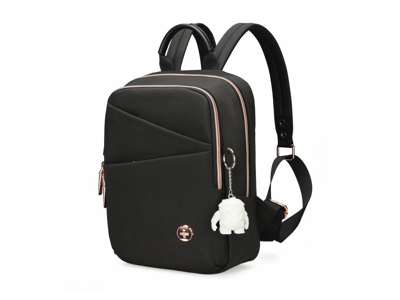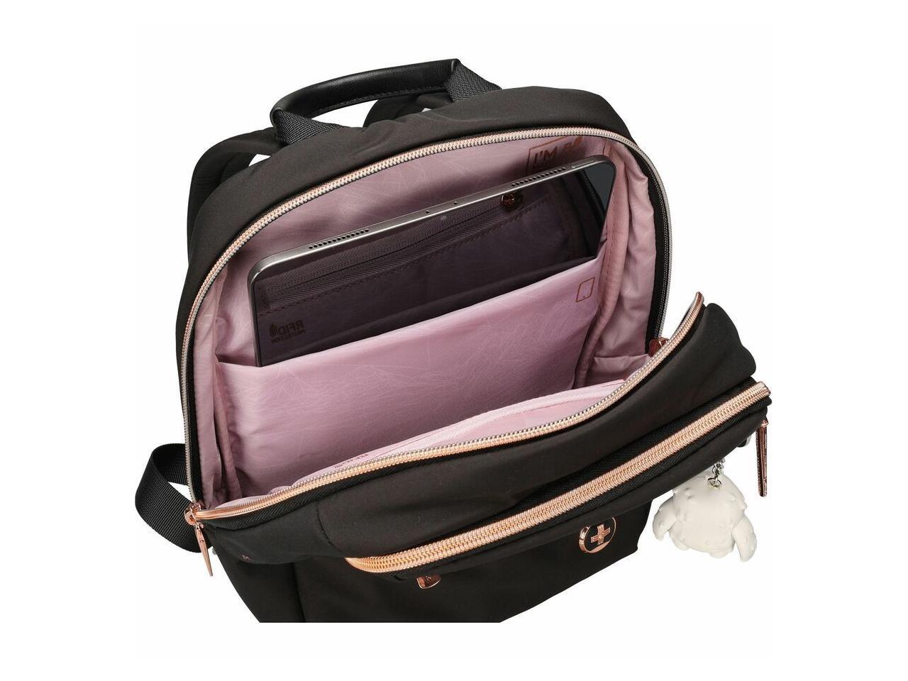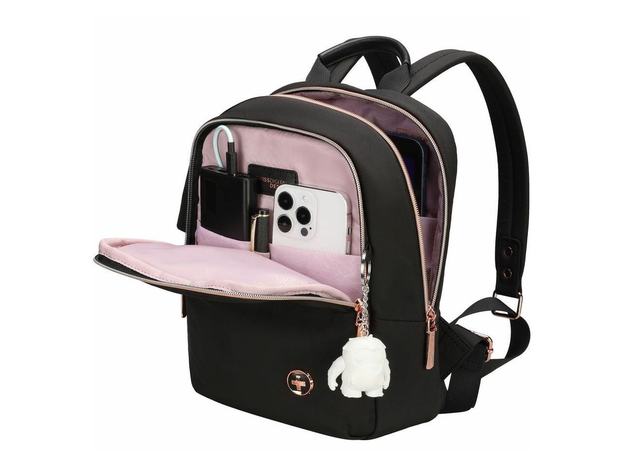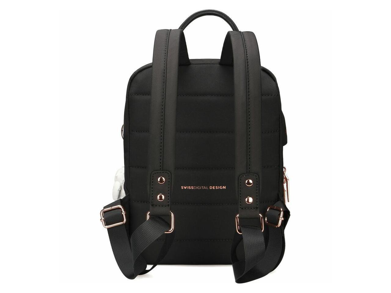 Swissdigital KATY ROSE NG Black M Backpack - Stylish, Eco-Friendly Bag with Patented USB Charging Port - RFID Protection Pocket - Padded Tablet Compartment (Fits up to 9.75" Tablet) SD1646-01