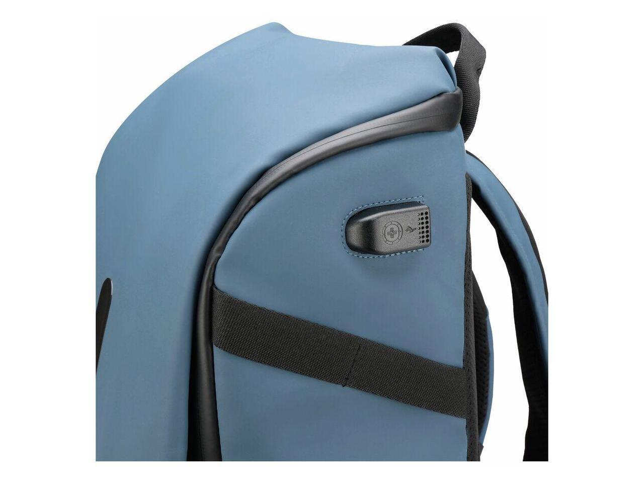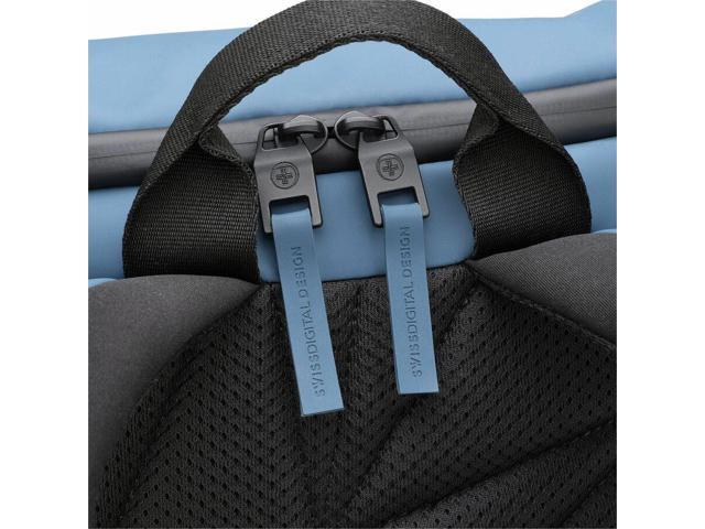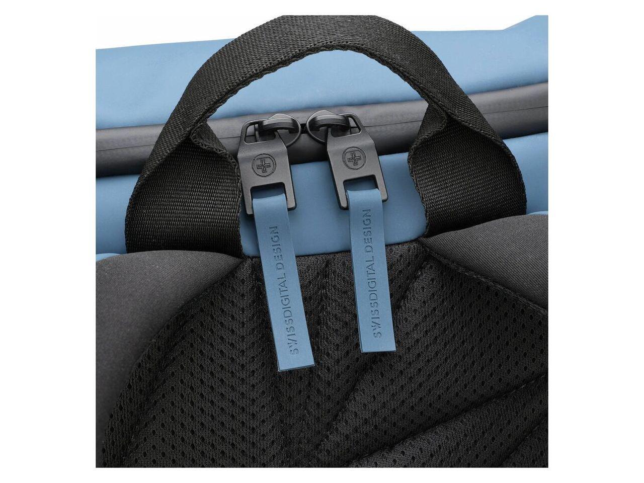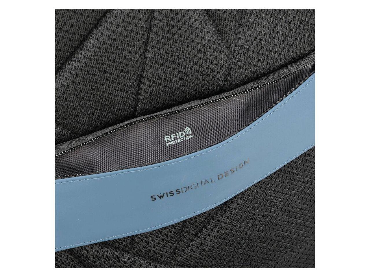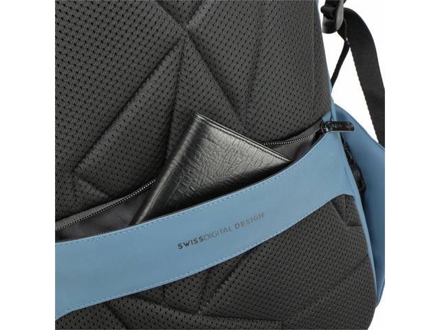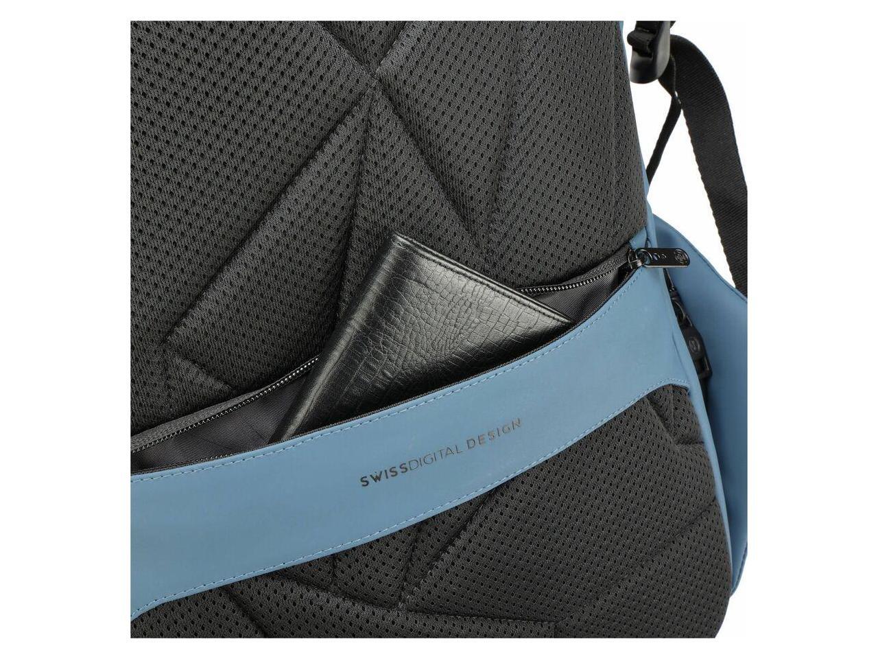 Swissdigital LAMONE Dark Blue L Backpack - LED Light System - USB Charging Port - RFID Protection Pocket - Eco-Friendly & Water Resistant Fabric - Trolley Sleeve - Fits 16" Laptop SD1685-16