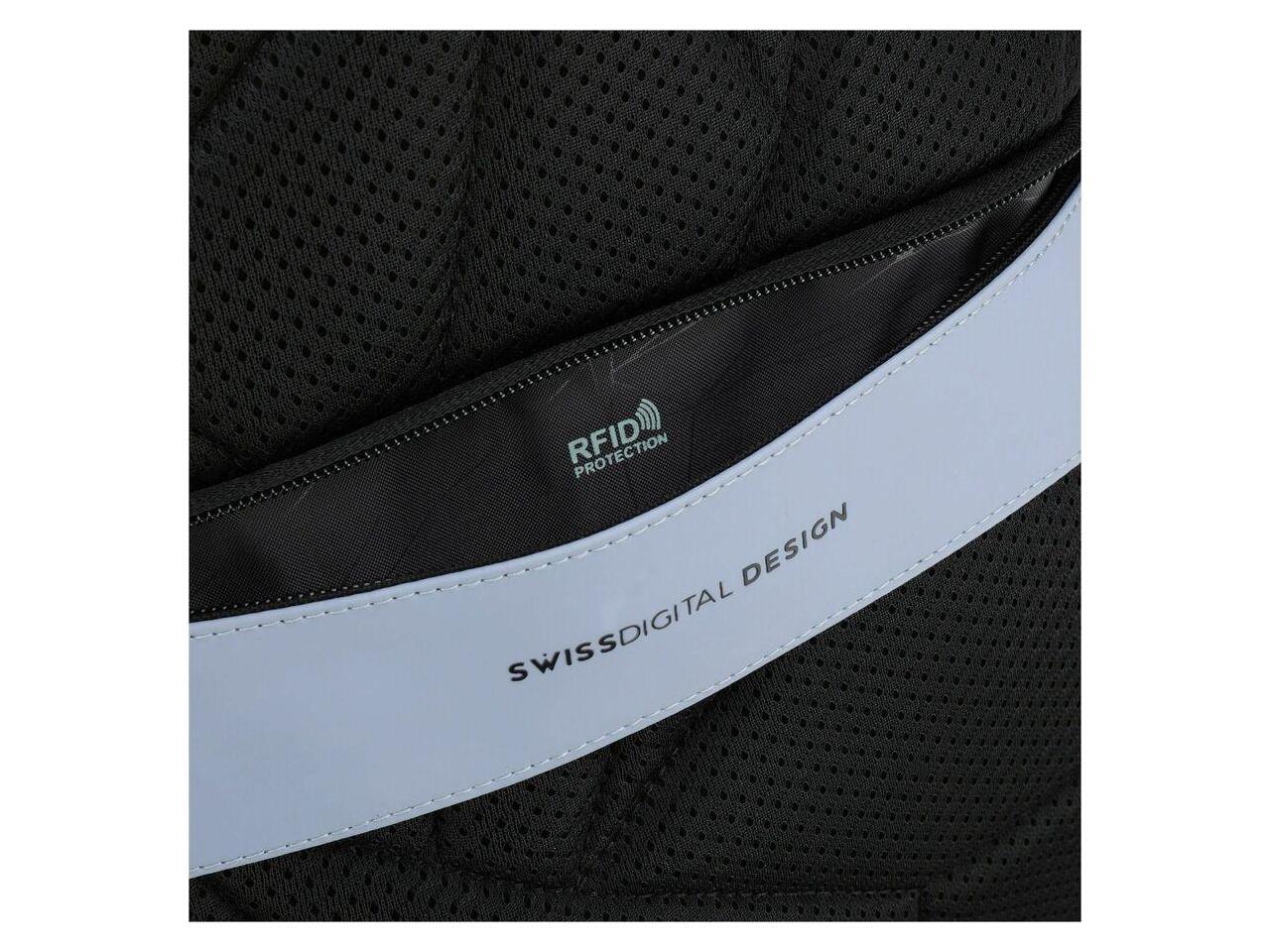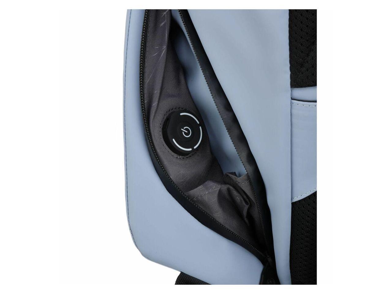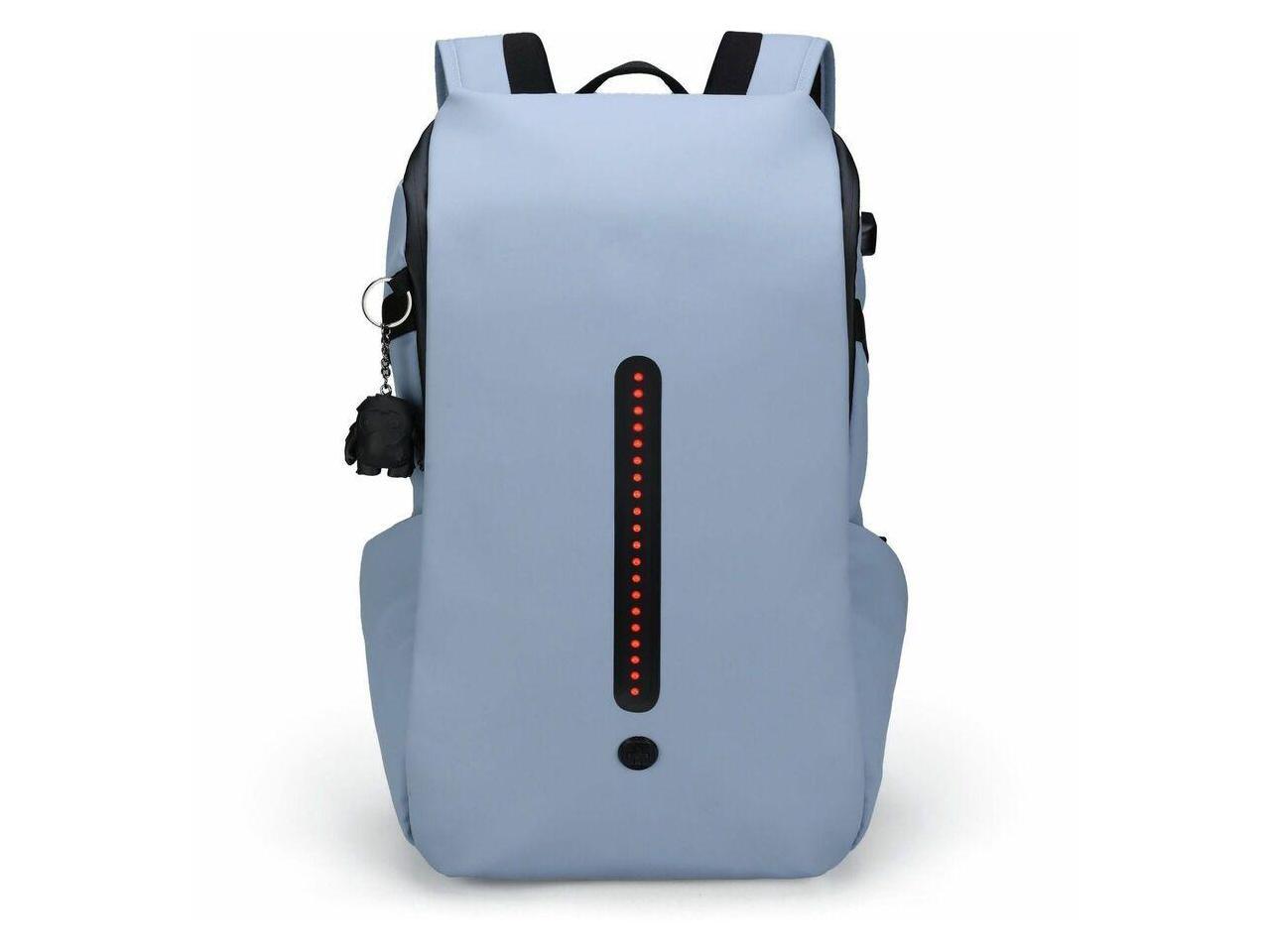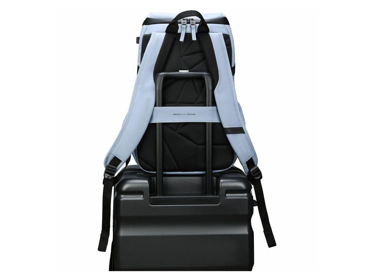 Swissdigital LAMONE Light Blue L Backpack - LED Light System - USB Charging Port - RFID Protection Pocket - Eco-Friendly & Water Resistant Fabric - Trolley Sleeve - Fits 16" Laptop SD1685-13