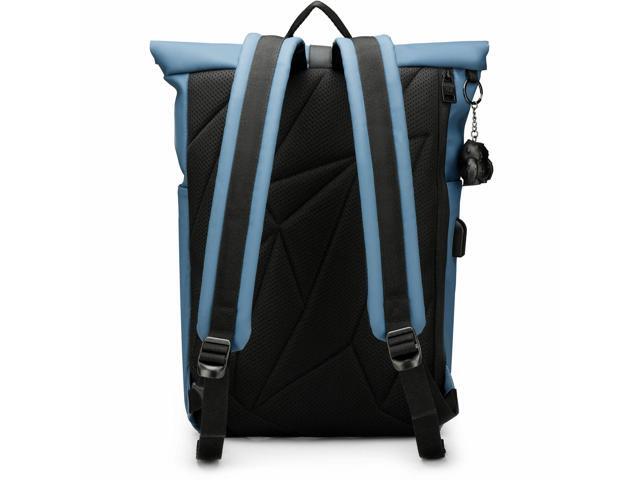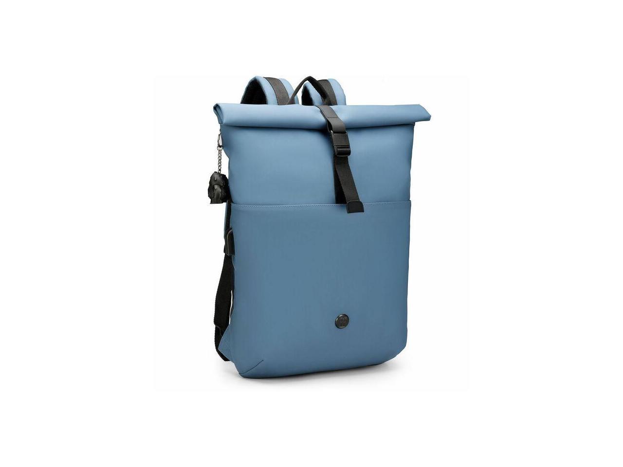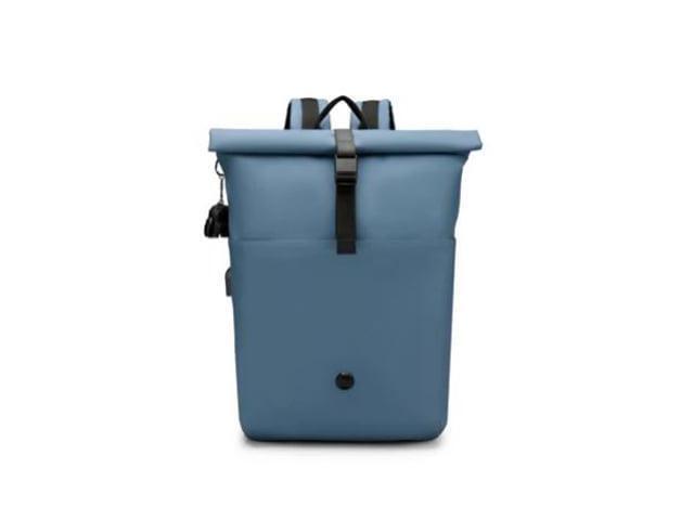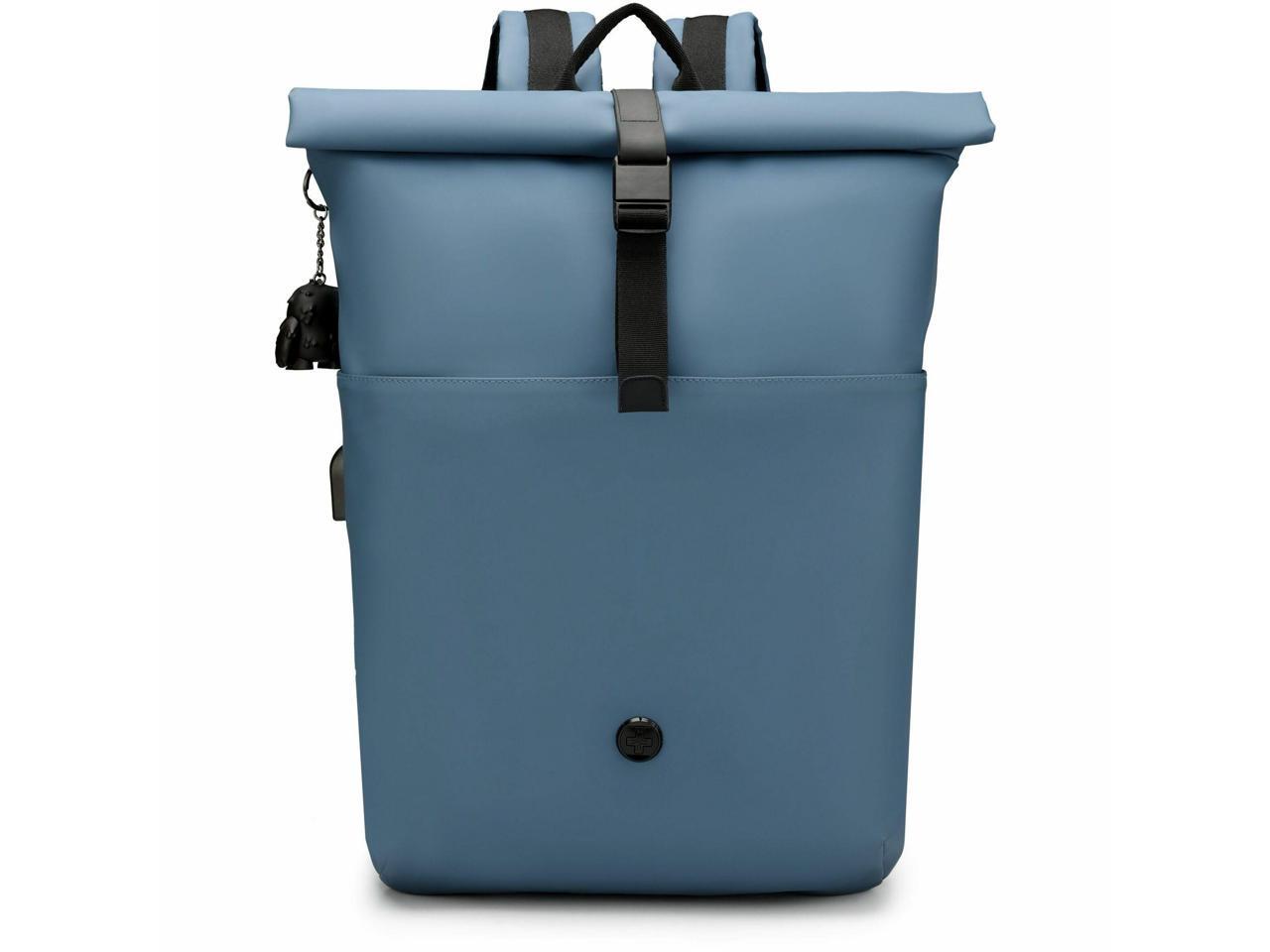 Swissdigital LAMONE Dark Blue Rolltop Backpack - USB Charging Port - RFID Protection Pocket - Eco-Friendly & Water Resistant Fabric - Fits 16" Laptop SD1681-16