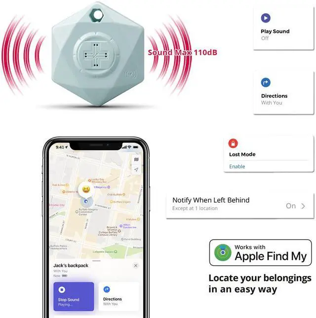 Audible Alarm: Plays an audible alarm with a volume of max 110 dB , help to fifind your missing items quickly and easily.