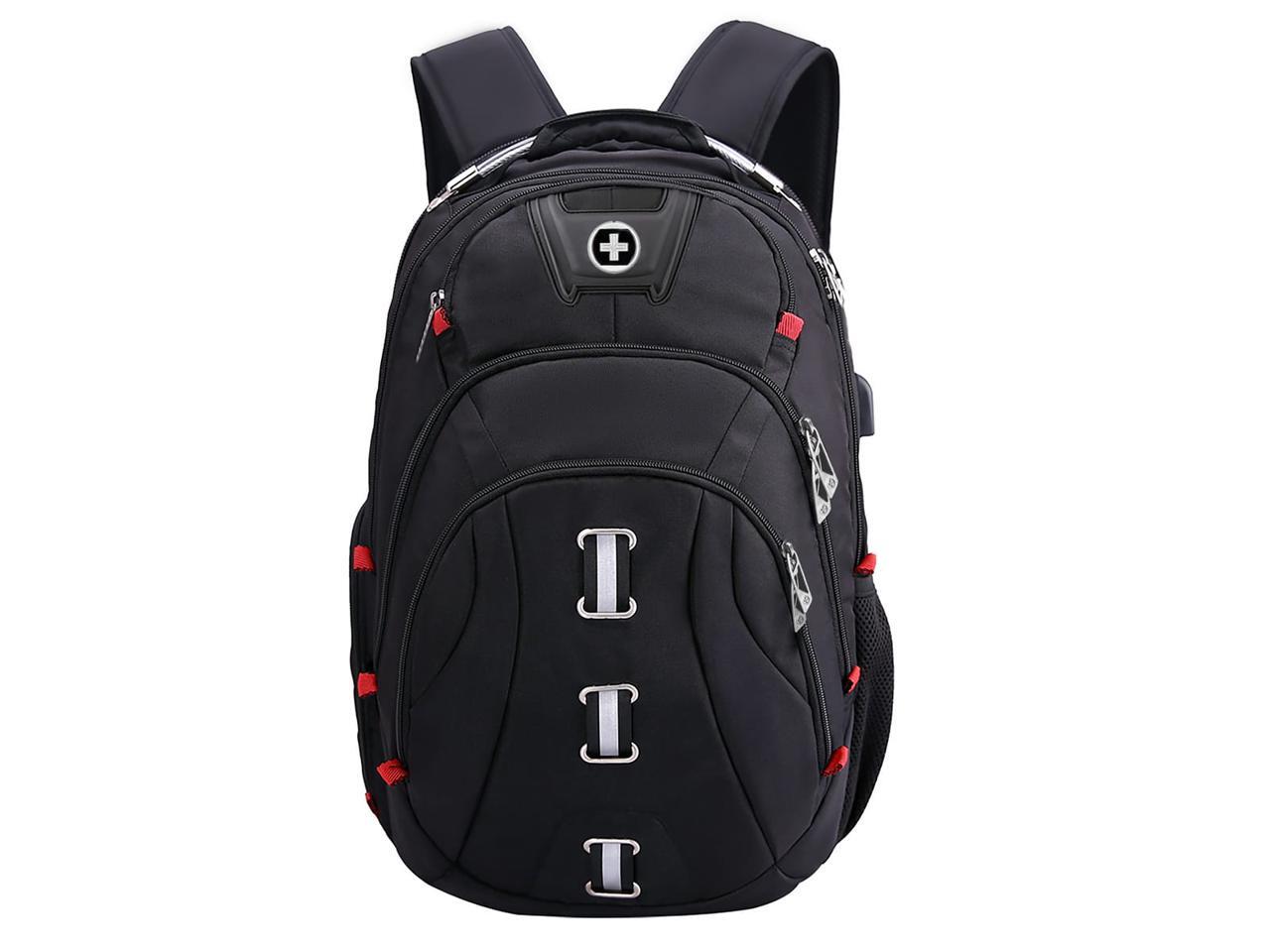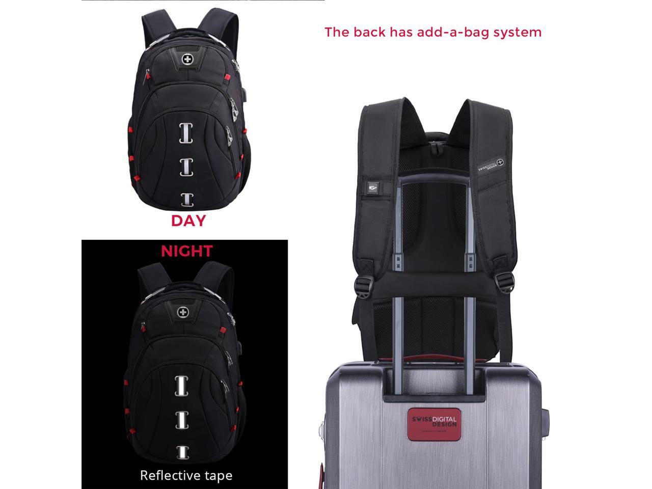 Swissdigital Black Pixel Business Backpack - Water Resistant – 15.6? Laptop Pocket – Extra Large Capacity – Durable Materials – Patented Smart USB Charging System – RFID Protection, Model SD-857