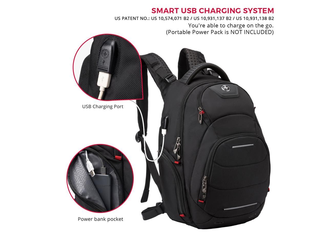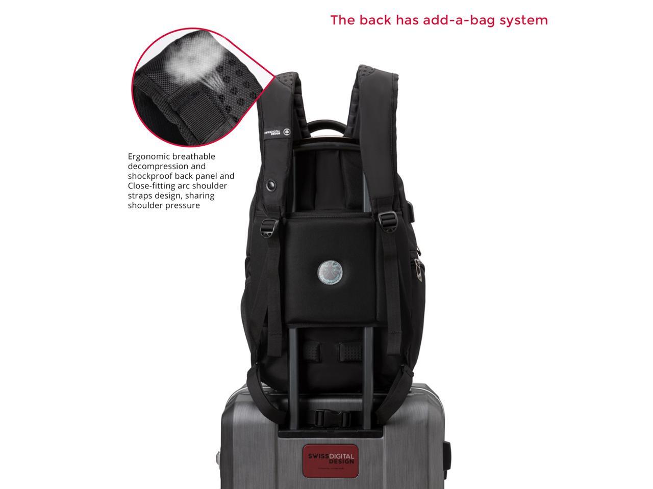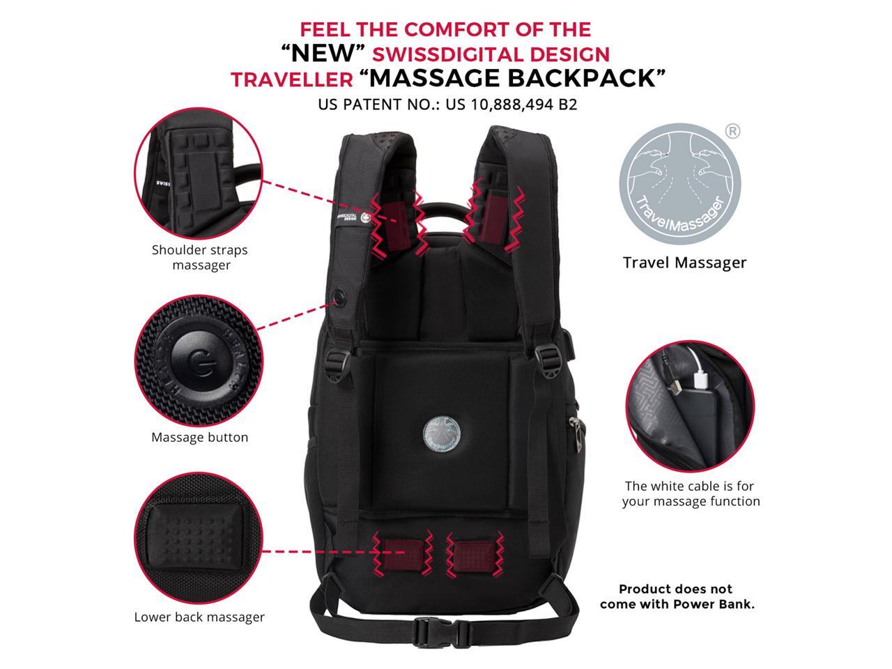 Swissdigital Neptune Massage Backpack – 15.6? Laptop Pocket – Large Capacity – Durable Materials – Patented Smart USB Charging System – RFID Protection – Add-A-Bag System (SD1003M-V1)