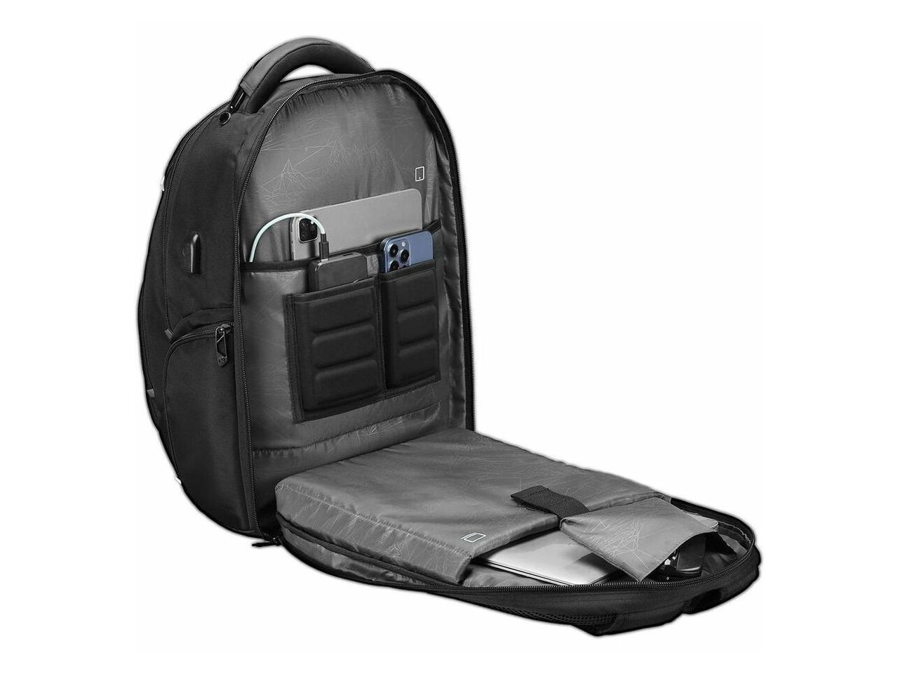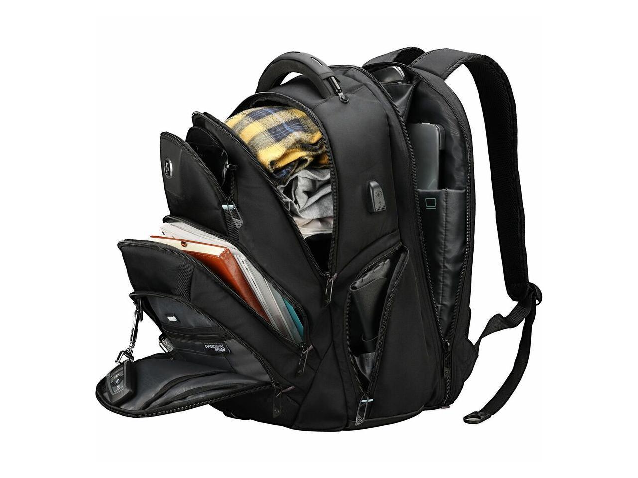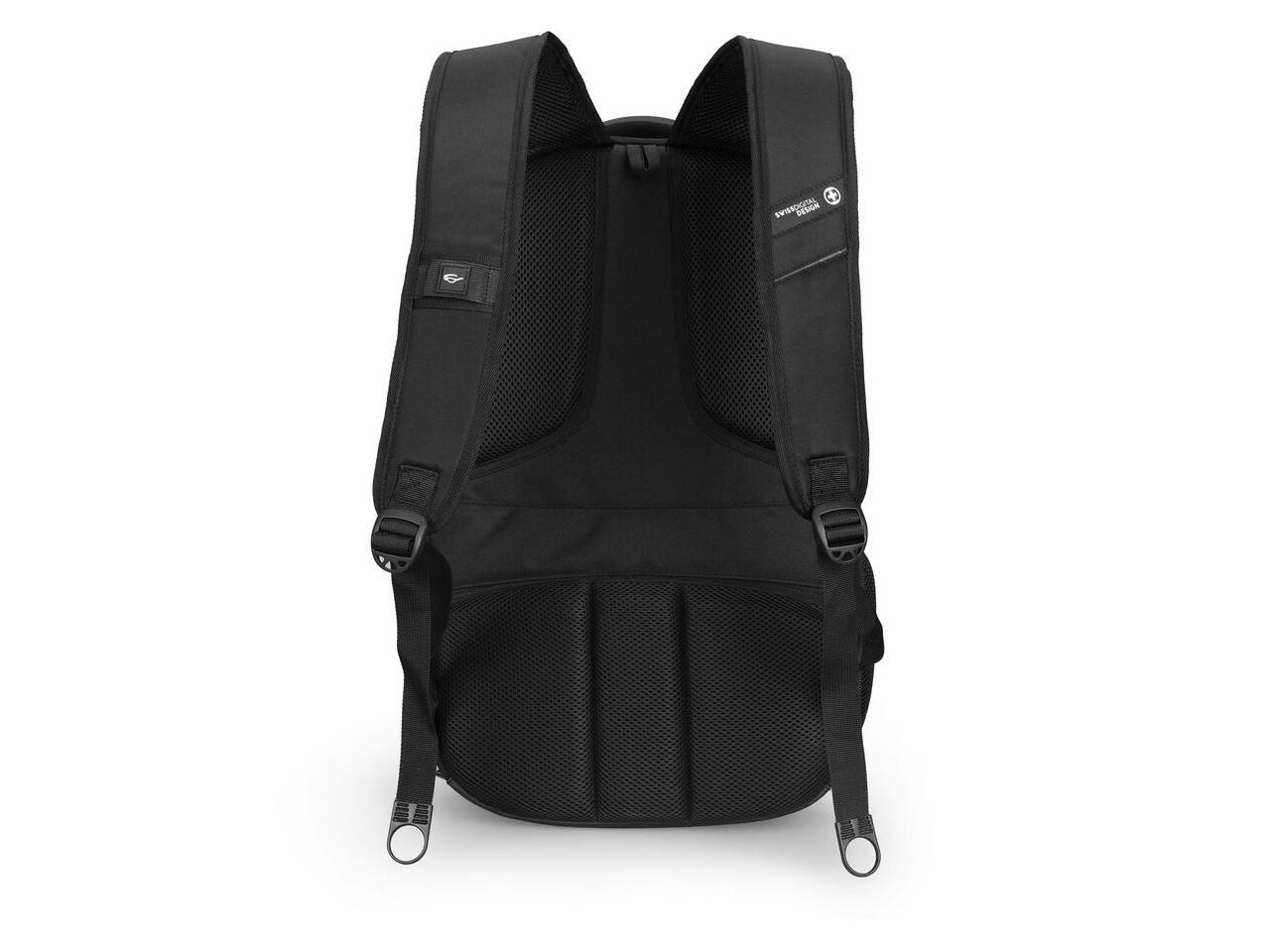 Swissdigital PIXEL PRO Black Backpack - Finder - Durable, TSA-Friendly Bag with USB Charging Port, RFID Protection Pocket SD1644FB-01