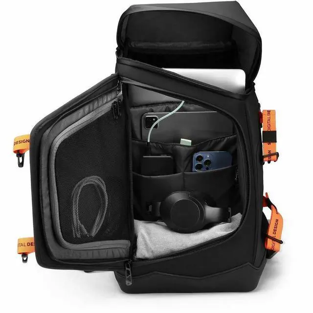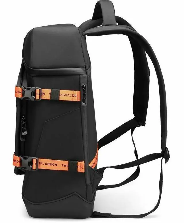 RFID protectionAn integrated RFID protection compartment helps to protect your sensitive personal data (such as credit cards, passports and driver's licences) from being accessed by scanners. Quality and comfortOur products combine quality and comfort with their ergonomic design, ensuring that all essentials can be carried easily during your trip. Practical solutionsEfficiently organize your belonging with a variety of multifunction pockets and compartments for hassle-free access to your essentials. Waterproof, mountain-shaped bottomDiscover our innovative protective solution, offering stability and durability while shielding your bag from moisture dirt and debrisPremium DesignBesides being packed with remarkable features to enhance your daily routine, this backpack's asymmetrical design creates a sleek silhouette that blends functionality with striking contemporary aesthetics.