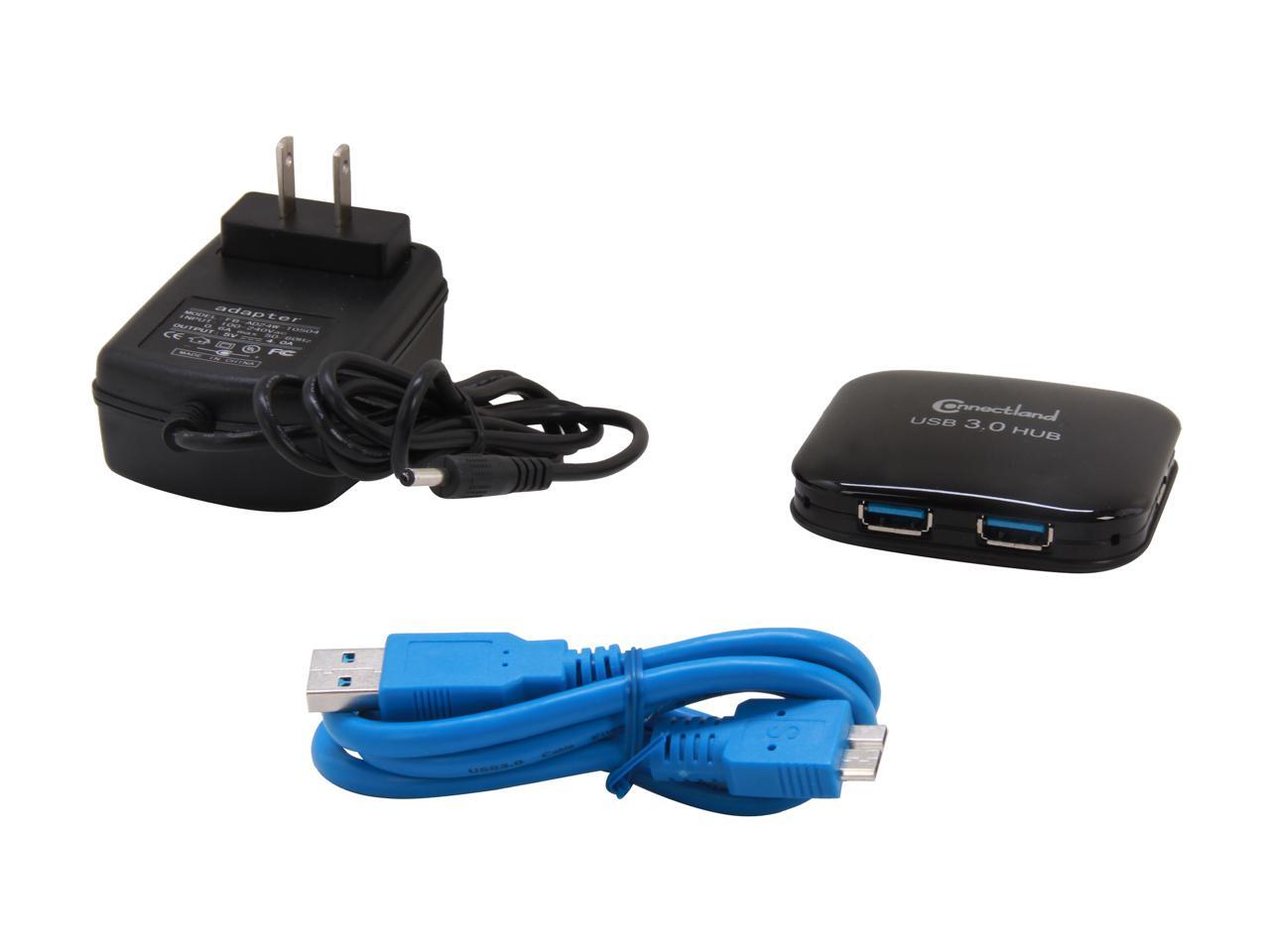 SYBA Connectland CL-HUB20126 USB 3.0 4-port Pocket Size Hub, 5Gbps Data Rate, Free AC Adapter and Cable - Black