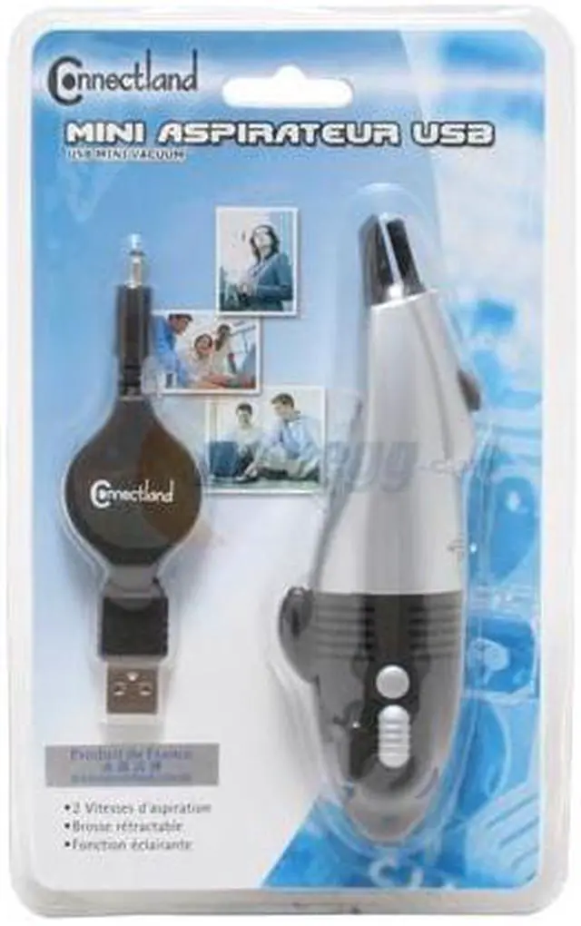 | Features | Simply connect the vacuum to the USB port of your laptop or computer. Compliant with USB 1.1 & USB 2.0. Turbo mode to increase twice the power. Retractable brush holder. Power ON/OFF/LED switch. LED function to light your cleaning space. USB powered. No need extra battery. Power consumption: Normal (220 mA), Turbo (260mA). Motor working: Normal (DC +4V at 18,000rpm), Turbo (DC +5V at 24,000 rpm). Retractable USB cable length: 10 – 100 cm. |