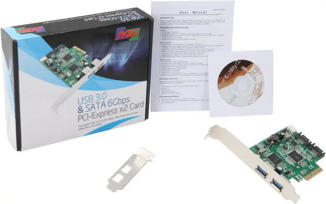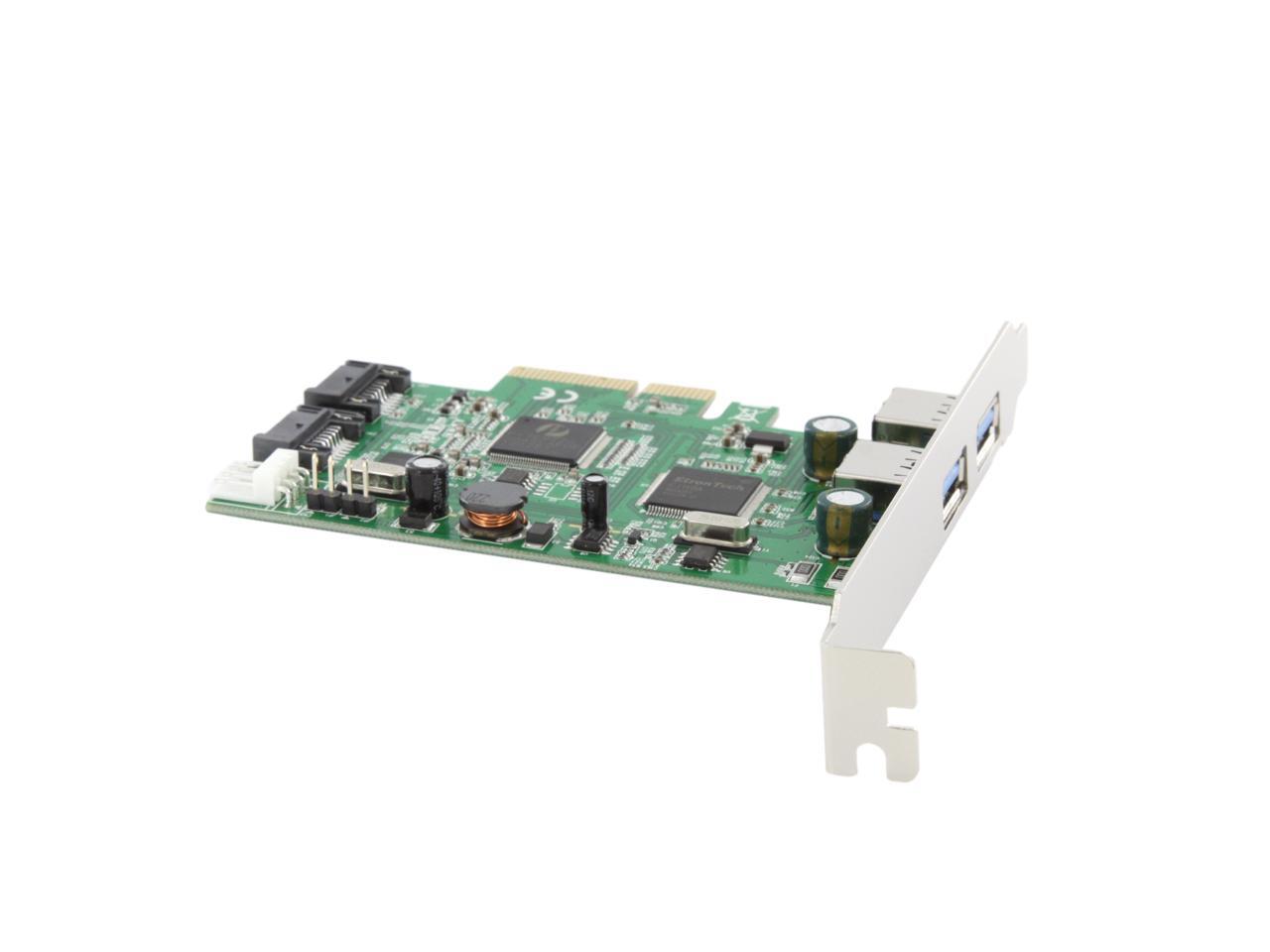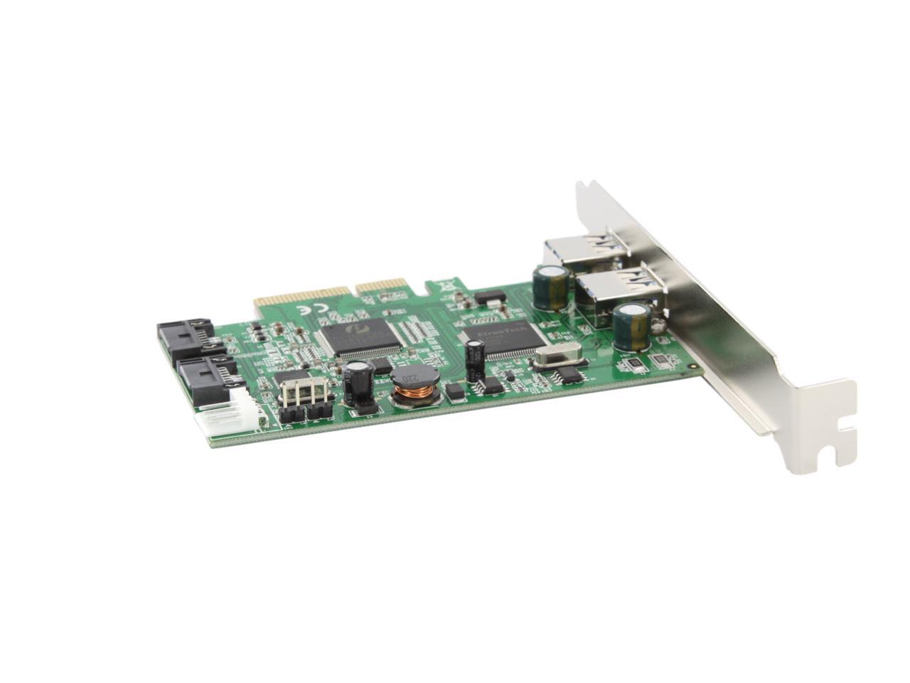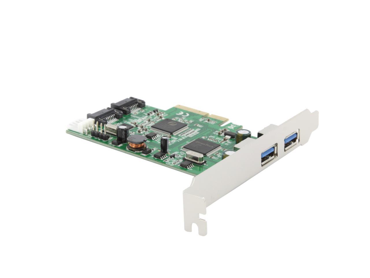 Catch up to speed with modern devices with this PCI-Express 2.0 to USB 3.0 and SATA III Combo Card (up to 6Gbps = 550mbps transfer speeds). Has both Etron EJ168A and ASMedia ASM1061 chipset. Designed with 2 USB 3.0 Ports and 2 internal SATA III ports in one PCI-Express card with a Unique HDD activity LED indicator circuit design!Host Interface: PCI Express 2.0 x4Total Number of USB Ports: 2Number of USB 3.0 Ports: 2Number of SATA Ports: 2Form Factor: Plug-in CardPackage Contents: PCI-e 2.0 to USB 3.0 and SATA 6Gbps Combo Card Driver CD User Manual Standard and Low Profile Brackets Platform Supported: PCPlatform Supported: MacLimited Warranty: 3 YearPackage Contents PCI-e 2.0 to USB 3.0 and SATA 6Gbps Combo Card Driver CD User Manual Standard and Low Profile Brackets