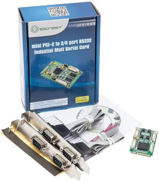 | Package Contents | 1x 4-Port RS232 Mini PCI-E Serial Card 2x Full-Size PCI Bracket w/ Two Male DB9 Ports 1x Mini-CD w/ Drivers 1x Manual (English and Chinese) 1x Warranty Information |
