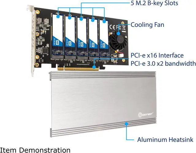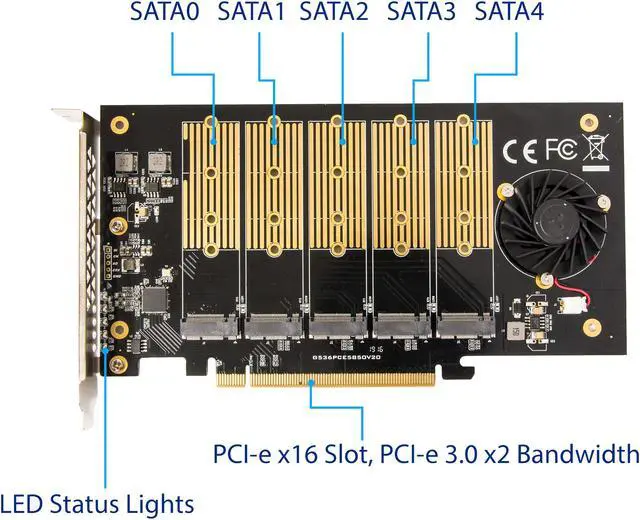 Add 5 Next Generation Form Factor (NGFF) M.2 SATA SSDs to your computer through PCIe x16 slot