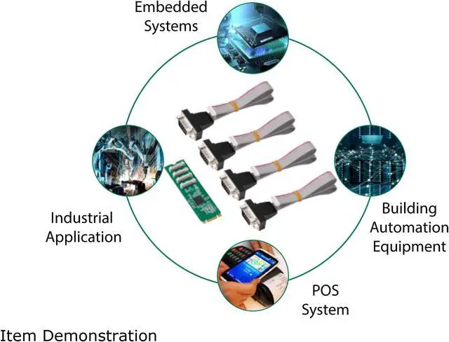 | Specifications | The IOCrest SY-PEX15066 lets you add 4 RS-232 serial ports to your embedded computer thought a free M.2 Slot. To be used in applications such as serial attached devices, serial networking/monitoring equipment, data acquisition system, POS terminal and industrial PC, add-on I/O cards-serial/usb, and Embedded systems -For I/O expansion. |