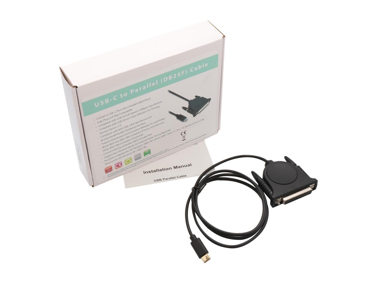 SYBA SD-ADA10012 USB Type-C Printer to Parallel Female DB25Cable, Bi-Directional Communication