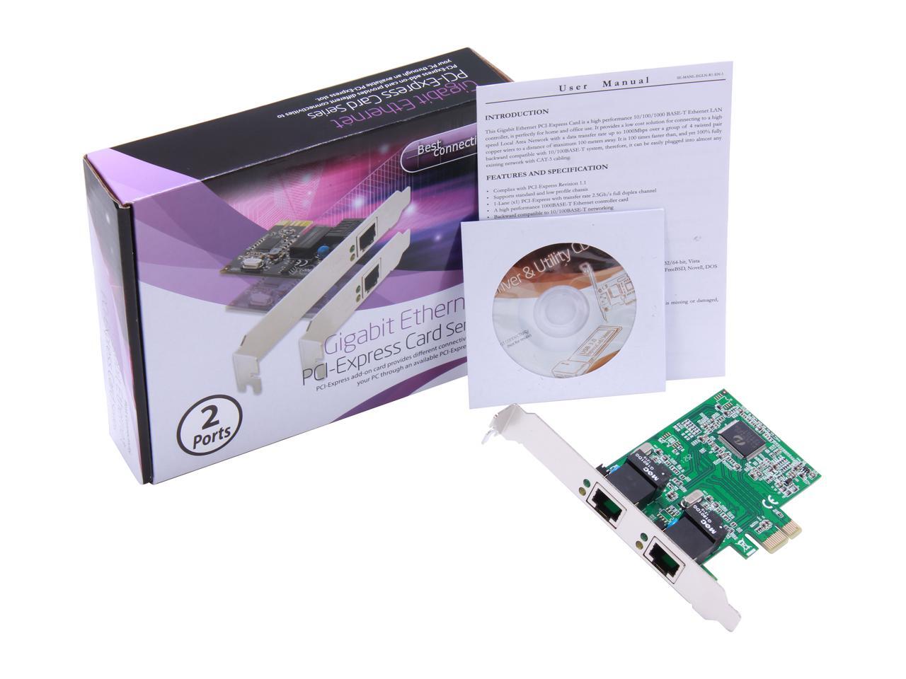 SYBA SD-PEX24033 Dual LAN Ports Gigabit Ethernet Card, Realtek Chipset 10/100/1000Mbps PCI-Express x1 2 x RJ45