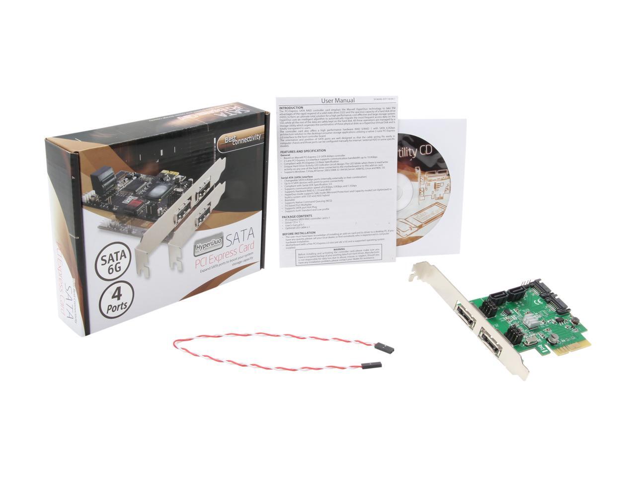 SYBA SD-PEX40054 PCI-Express 2.0 x2 SATA III (6.0Gb/s) HyperDuo 4-port RAID Controller Card