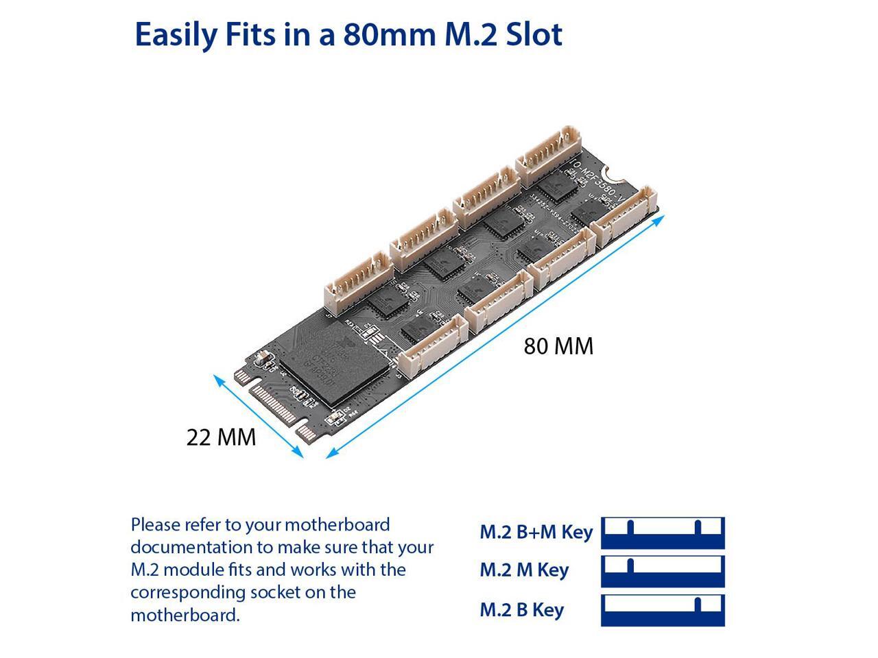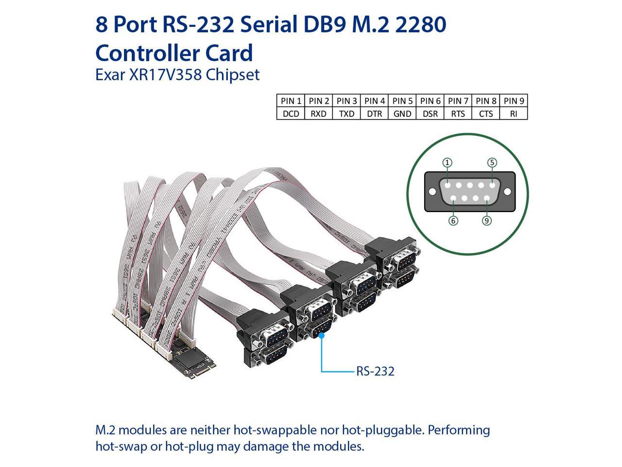 Syba 8 Port RS-232 DB9 Serial M.2 B+M Key Controller Card - SI-ADA15071